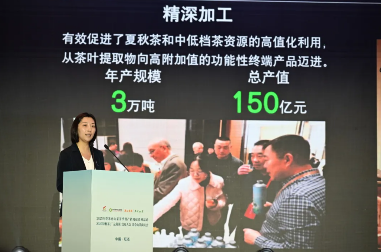 王庆会长指出:中国茶产业作为传统优势产业,既承载着深厚的历史文化底蕴,也在国民经济尤其是农业经济中占据重要地位。近年来,旺苍坚持“政府为主导、市场为龙头、品牌为主线”的产业发展之路,立足独特的生态资源优势和良好的产业发展基础,精心引育并持续深耕茶产业,续写了“一片叶子富一方百姓”的新传奇。希望旺苍能以此次大会为契机,探寻以“黄茶”为代表的特色茶文化内涵,促进特种茶产销协同协作创新发展机制,努力打造茶产业经济高质量发展的新引擎。