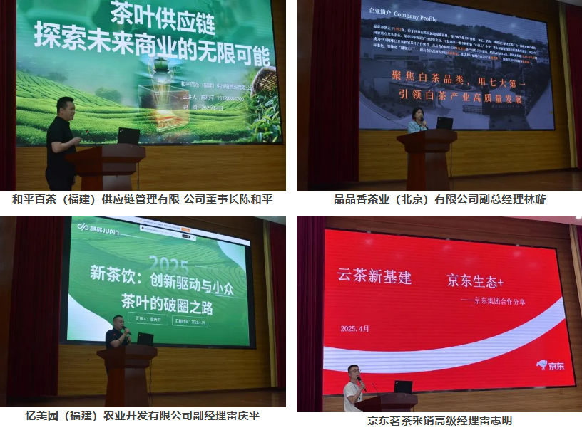 本次会议聚焦景谷大白茶产业“新质生产力”,特别邀请和平百茶(福建)供应链管理有限公司董事长陈和平、品品香茶业(北京)有限公司副总经理林璇、忆美园(福建)农业开发有限公司副总经理雷庆平以及京东茗茶采销高级经理雷志明四位行业精英,分别围绕茶叶供应链打造、茶叶品牌培育、新茶饮赛道建设以及电商渠道拓展四个关键领域进行了深入的专题讲解,结合自身的经验与前沿市场洞察,为景谷大白茶产业的发展把脉问诊、建言献策。