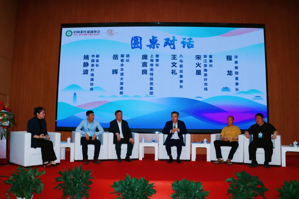 在茶企圆桌对话环节,中国茶叶流通协会副会长姚静波担任主持,在品牌与渠道建设议题中,中国茶叶流通协会副会长、八马茶业股份有限公司董事长王文礼提出构建“公共品牌+企业品牌”双轮驱动体系的策略,并针对浮梁茶“优质难优价”困境,建议通过创新渠道协作模式平衡在地特色与商业网络拓展。中国茶叶流通协会副会长、上海帝芙特投资集团有限公司董事长庞言良则结合销区市场经验,为浮梁茶对接长三角及跨境渠道提供供应链优化等解决方案。浙江浙南茶叶批发市场有限公司董事长宋火星聚焦产区协同机制,强调需整合茶农、合作社与企业资源,提升市场竞争力。茶瓷融合成为另一焦点,国瓷永丰源瓷业有限公司大渠道团长岳辉提出“瓷茶一体化”联名营销模式,建议浮梁茶与陶瓷产业共研产品、共享渠道,实现双向赋能。浮茶集团董事长程龙剖析本土优势与挑战,呼吁以文化厚度与生态维度为核心,推动产业链、价值链、创新链“三链融合”。