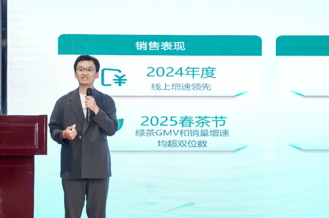 会上,京东超市茗茶组负责人张恺,分析了当前绿茶品牌在新零售环境中的市场现状,指出线上与线下融合的趋势日益明显。通过京东超市的数据,展示了绿茶品类在线上销售的增长趋势及消费者行为特点。并提出了绿茶品牌在新零售环境下应注重品牌故事的讲述,通过文化营销增强品牌竞争力。