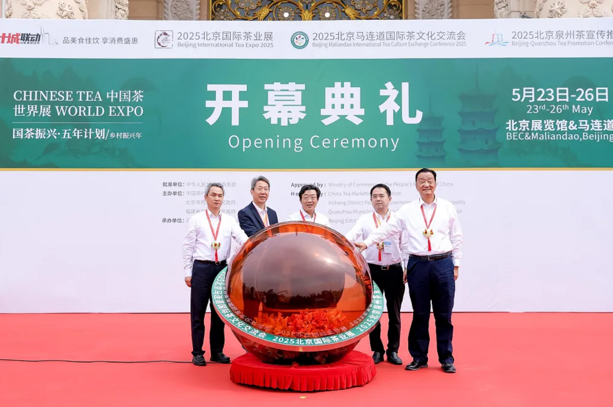 中华全国供销合作总社党组成员、理事会副主任陈祖新宣布2025“北京国际茶业展 北京马连道国际茶文化交流会 北京泉州茶宣传推介会”开幕,并同中国茶叶流通协会会长、全国茶叶标准化技术委员会主任委员王庆,北京市西城区政协主席刘国强,泉州市政协主席肖汉辉,首旅集团副总经理、北京展览馆集团有限公司董事丛日芳一起参与启动。