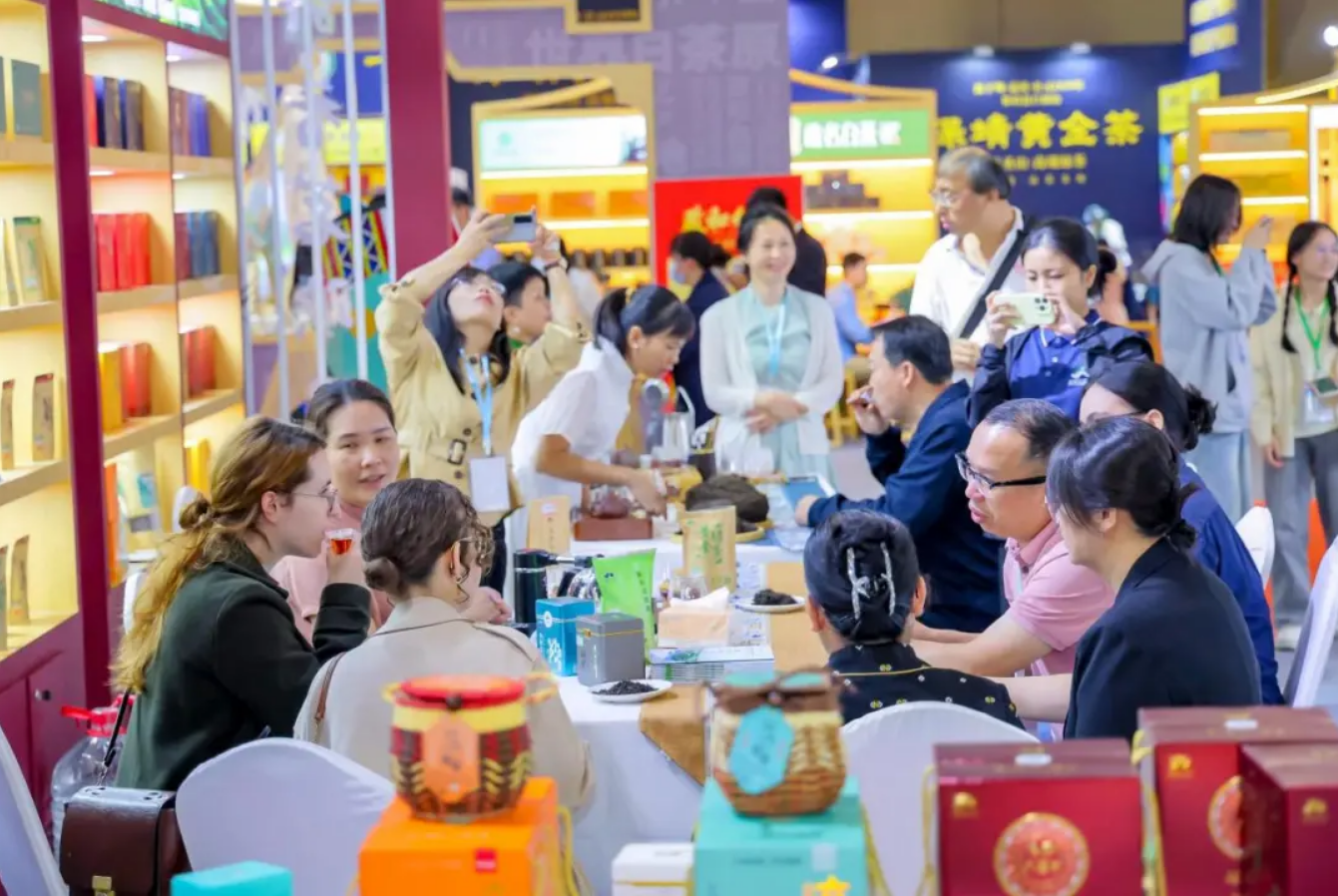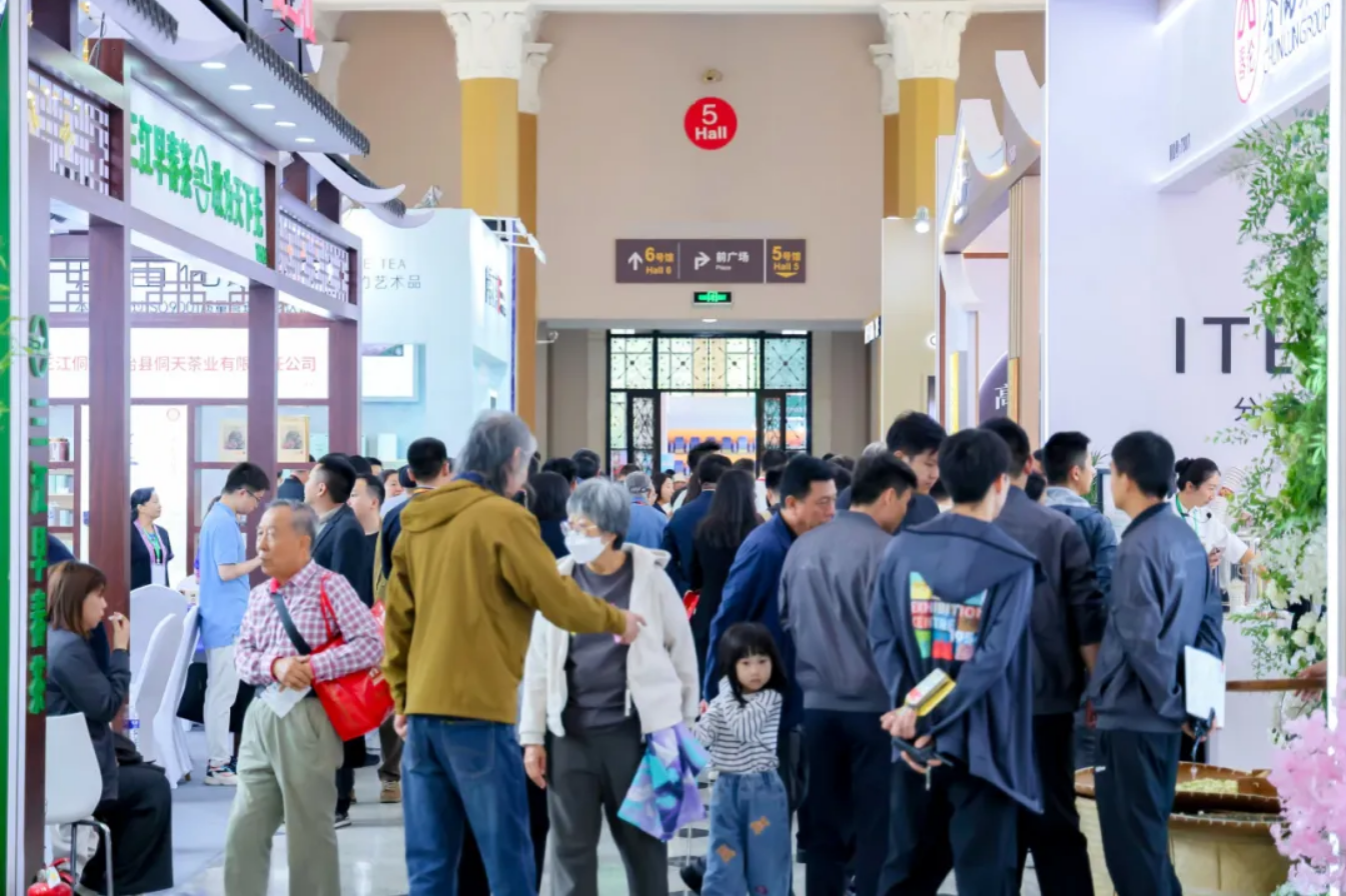 2025北京国际茶业展进入第二天,展馆内人潮攒动,众多消费者前来品茗选购。