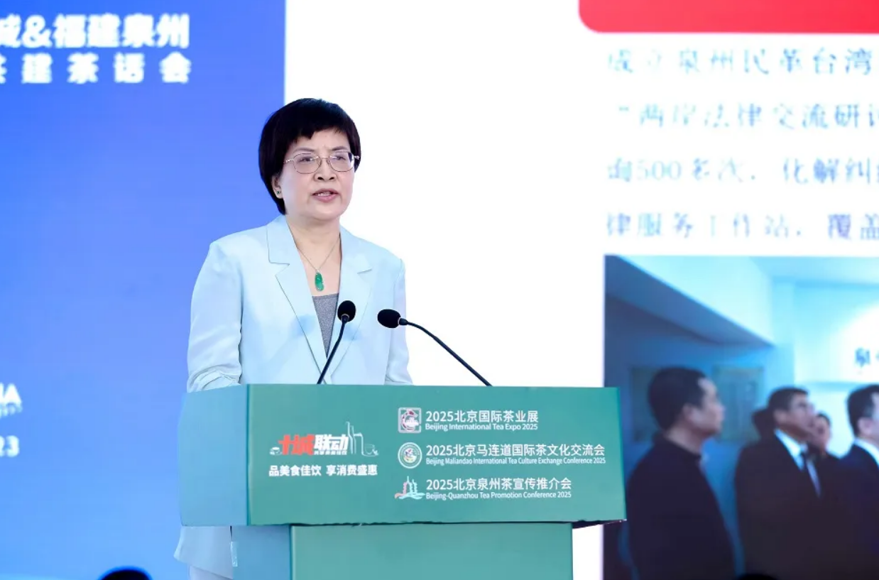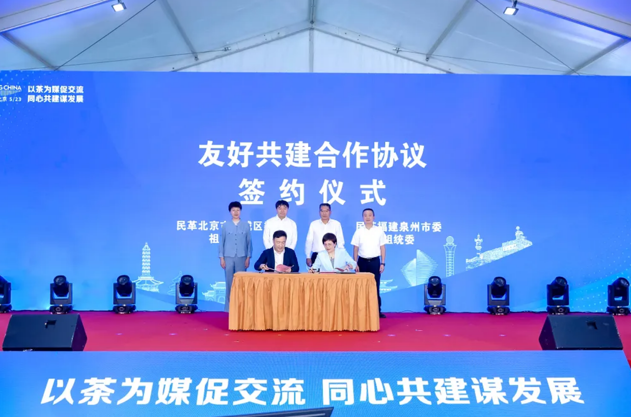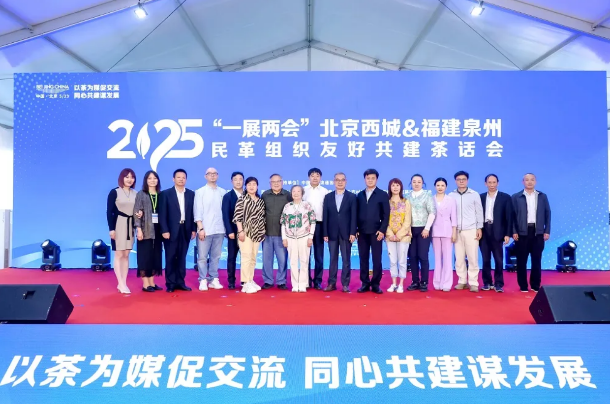 5月23日下午,由中国茶叶流通协会支持,民革北京市西城区委、民革福建省泉州市委、福建省泉州市农业农村局、北京市西城区展览路街道办事处联合举办的“2025‘一展两会’北京西城 福建泉州民革组织友好共建茶话会”在北京展览馆举行。活动以“以茶为媒促交流 同心共建谋发展”为主题,旨在加强两地民革组织间的友好交流,共同为祖国统一事业贡献力量。