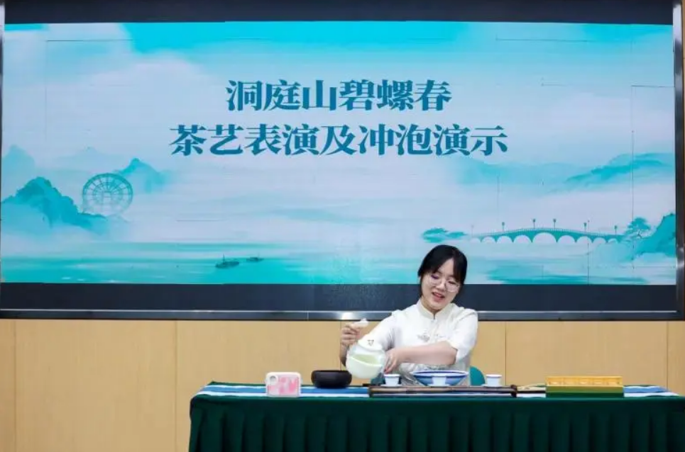 活动现场,茶艺师以精湛的技艺展示了碧螺春传统冲泡技法,结合解说,让观众领略“茶在水中舞,春从杯底生”的意境,生动诠释了碧螺春茶文化的深厚底蕴。