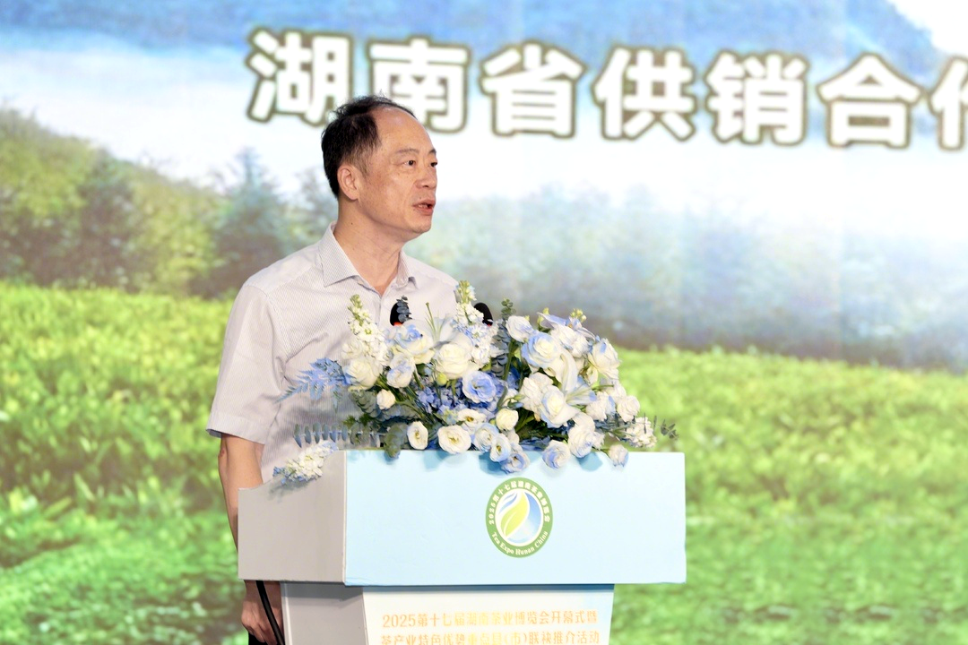 王庆会长表示:茶产业是湖南省传统优势特色农业产业,形成了以黑茶、红茶、绿茶、黄茶为主体,特色茶为补充的产业格局,打造了潇湘茶、湖南红茶、安化黑茶、岳阳黄茶、桑植白茶,构建了“三湘四水五彩茶,五彩湘茶香天下”的品牌集群,茶产业已成为湖南农业农村经济发展的一张亮丽名片。茶博会的举办,是贯彻落实“三茶统筹”发展理念和党的二十大精神,全面推进乡村振兴战略的具体行动;是推动茶产业高质量发展,夯实千亿湘茶产业的重要举措;也是弘扬茶文化,促进茶文化交流与合作的有效途径。