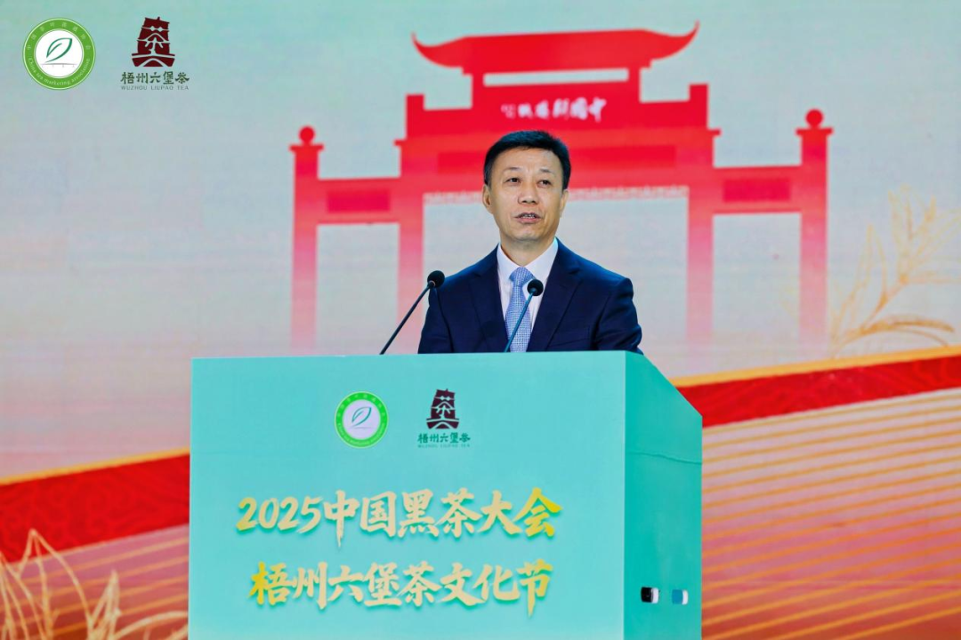 梧州市委书记蒋连生在致辞中向海内外嘉宾致以热烈欢迎,全面介绍了梧州六堡茶产业发展成果与未来规划,强调梧州将以本次大会为契机,全力推动六堡茶产业提质升级、高质量发展。热切期盼与全国各黑茶产区、广大专家学者和企业家们一道,共同唱响“品质立茶、绿色兴茶、科技强茶、品牌旺茶”主旋律,推动梧州六堡茶与全国其他地区的名茶“各美其美、美美与共”。