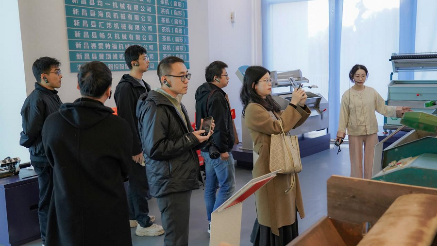 在“寻茶记”调研点,记者们聆听大佛龙井产业现代化演变历程,了解炒茶技术从手工到标准化的革新,感受“禅茶同源”文化的当代传承。随后,带着对“大佛龙井”的深入认知,大家一同走进新昌茶保姆现代化农事服务中心,探访农技指导、农机服务等一体化模式,直观感知其为茶农降本、产业提质提供的实效支撑作用。
