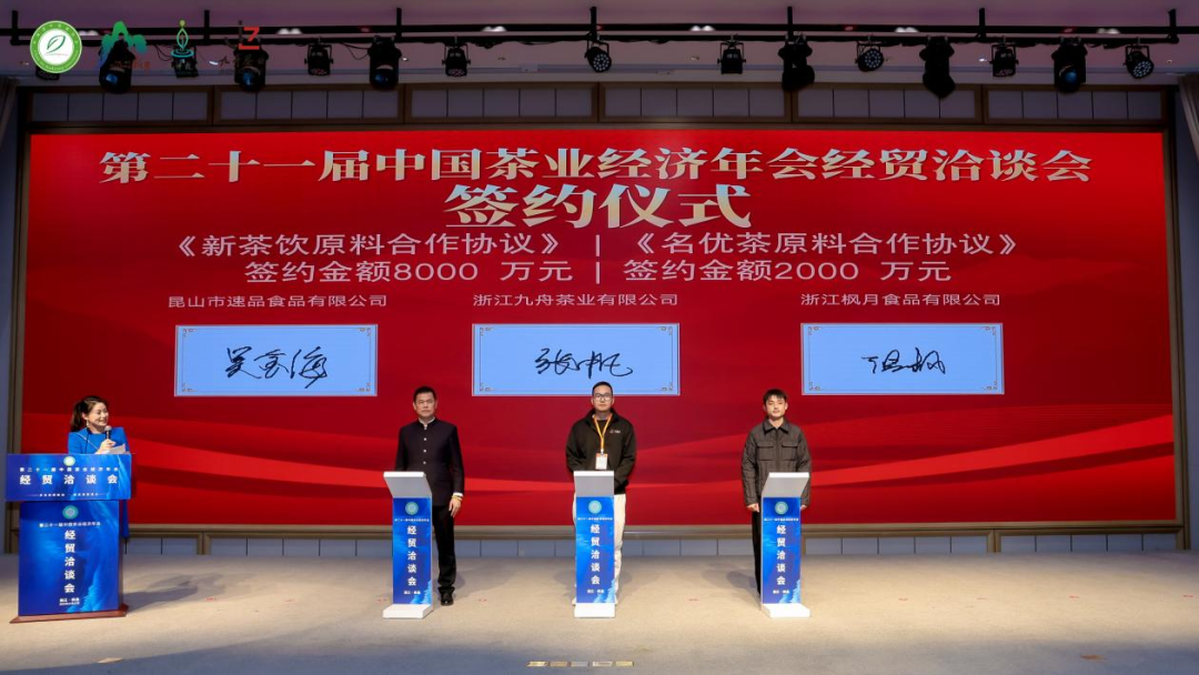浙江九舟茶业有限公司分别与昆山市速品食品有限公司、浙江枫月食品有限公司签约。