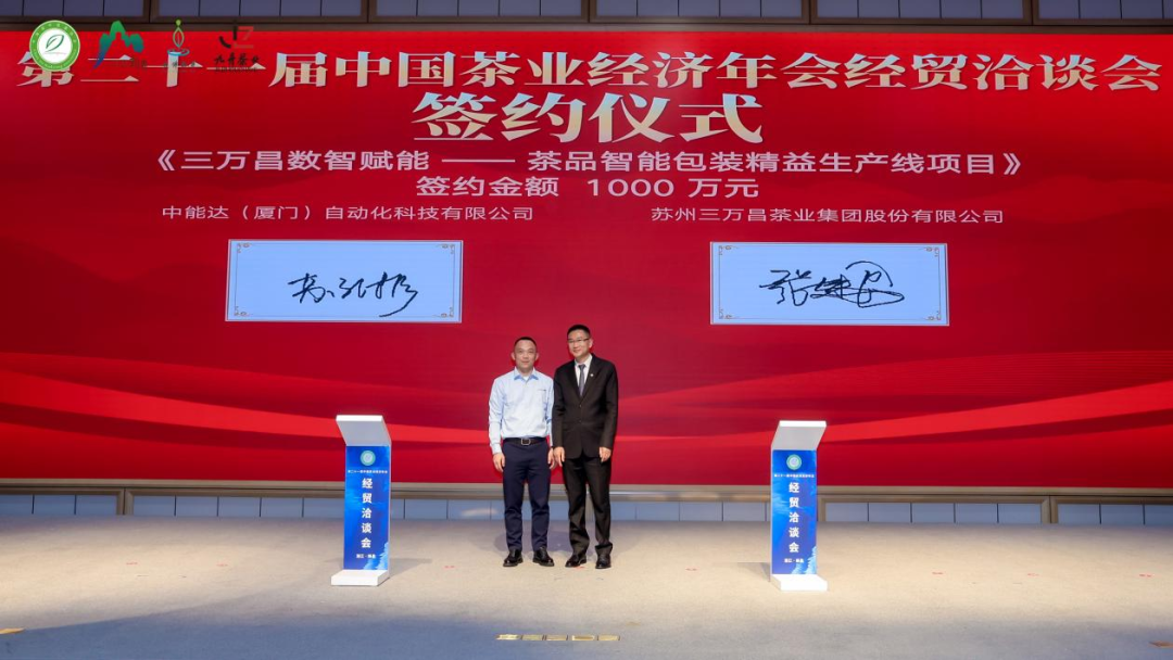 中能达(厦门)自动化科技有限公司与苏州三万昌茶业集团股份有限公司签订《三万昌数智赋能 —— 茶品智能包装精益生产线项目》合作协议。
