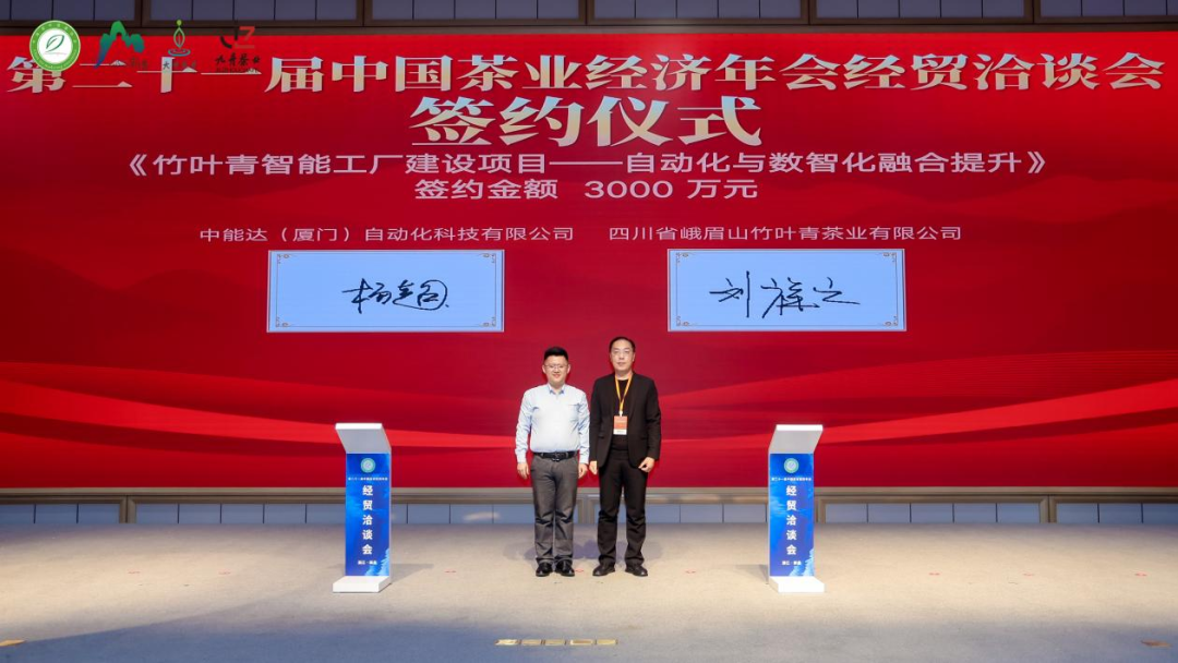 中能达(厦门)自动化科技有限公司与四川省峨眉山竹叶青茶业有限公司签订《竹叶青智能工厂建设项目 —— 自动化与数智化融合提升》合作协议。