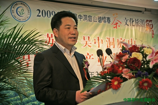 中国茶叶流通协会常务副会长王庆首先在论坛致辞,他说,本次论坛是在协会和吴中区人民政府签订长期合作协议的基础上召开的,论坛的召开也标志着双方合作的正式启动。最近几年,吴中区委、区政府依托秀美的太湖风光和深厚的文化底蕴,把茶产业和旅游资源有机的结合起来,倾力打造碧螺春文化,极大促进了当地茶产业的发展。今后双方将立足各自的优势,共享信息和市场资源,激发碧螺春茶产业更多的潜能,为美丽的吴中城,为飘香的碧螺春,建立一个对外宣传和展示的平台。