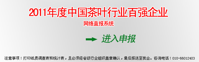 为进一步巩固成果,科学研判产业发展趋势,提升行业竞争力,中国茶叶流通协会决定即日起开展“2011年度中国茶叶行业百强企业”调查工作,后期将根据调查工作结果,公示、发布“2011年度中国茶叶行业百强企业”、“2011年度中国茶业十强连锁加盟企业”,并完成《2011中国茶叶行业发展报告》。