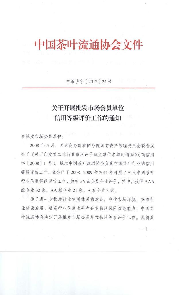 关于开展茶馆会员单位信用等级评价工作的通知