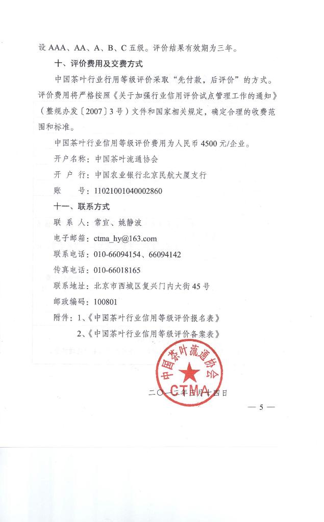 附件2:《中国茶叶行业信用等级评建备案表》