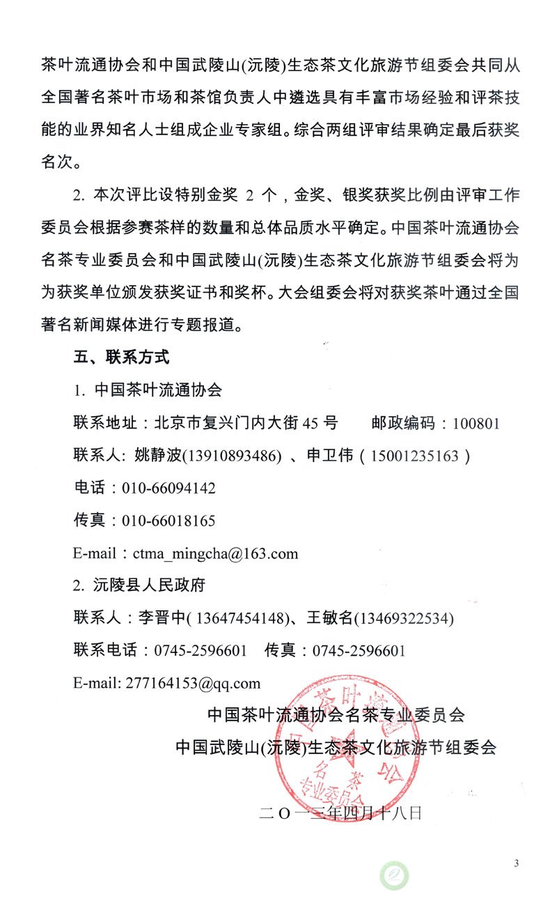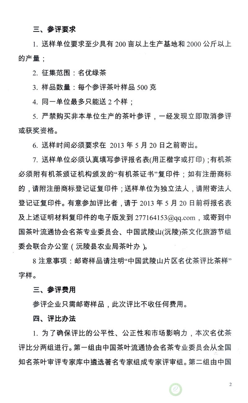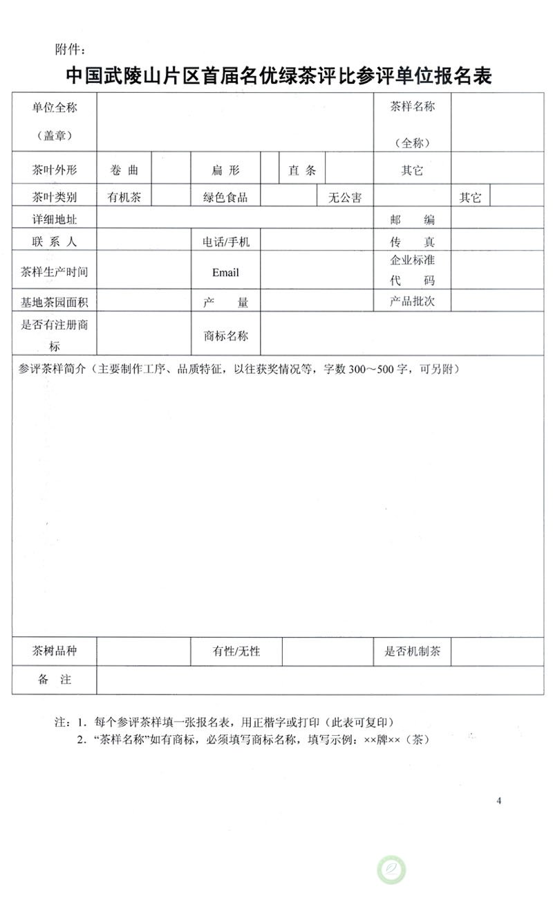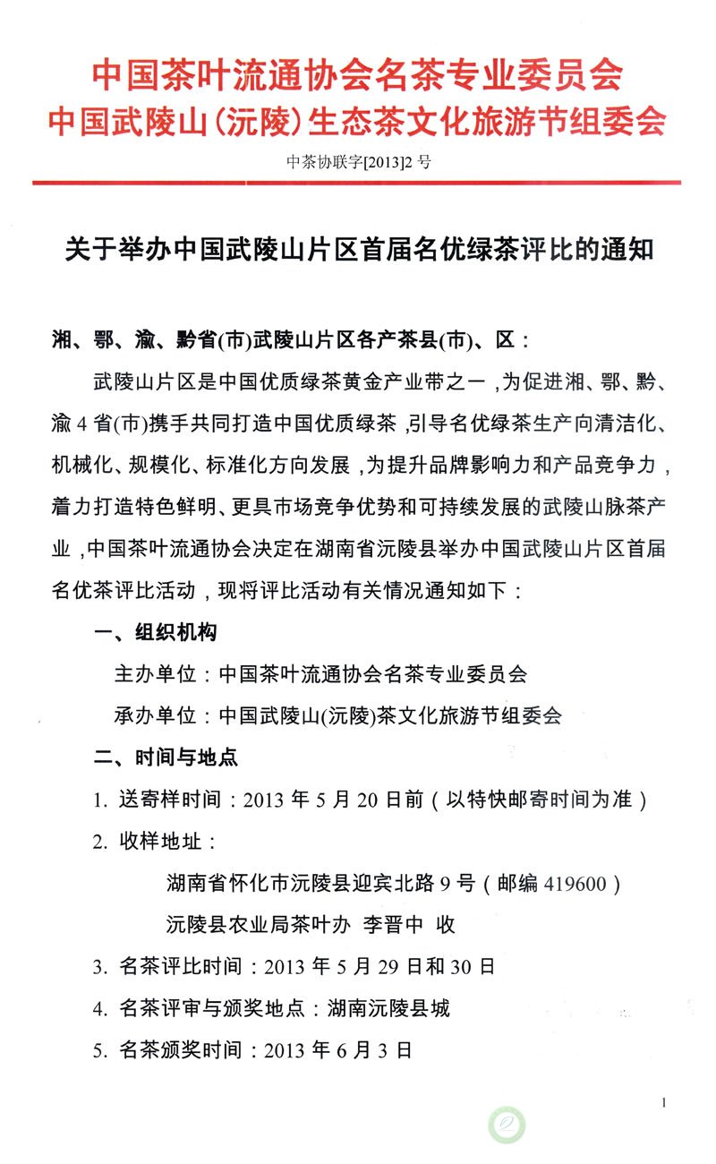 关于举办中国武陵山片区首届名优绿茶评比的通知