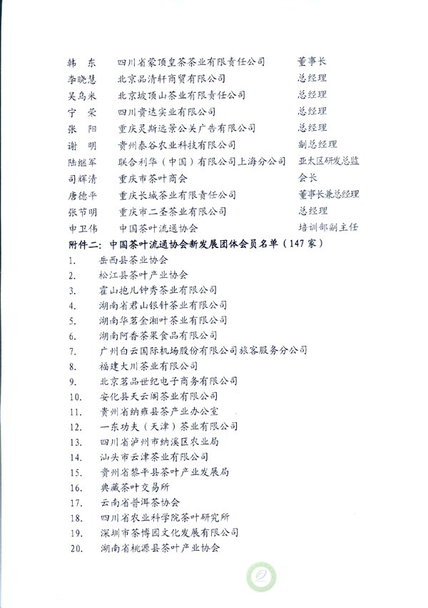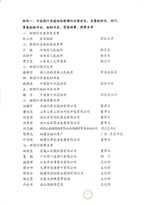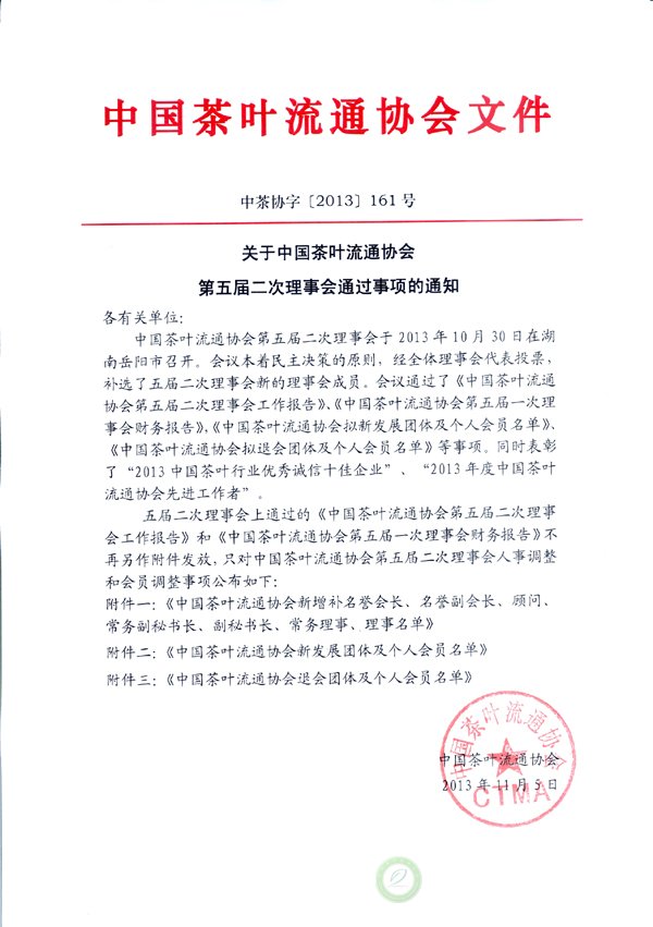 关于中国茶叶流通协会第五届二次理事会通过事项的通知