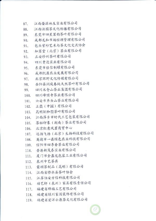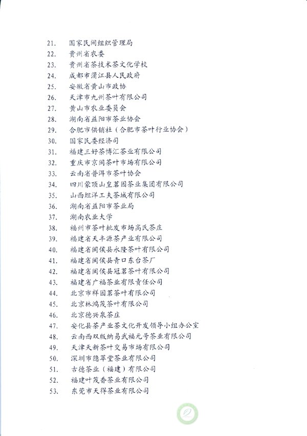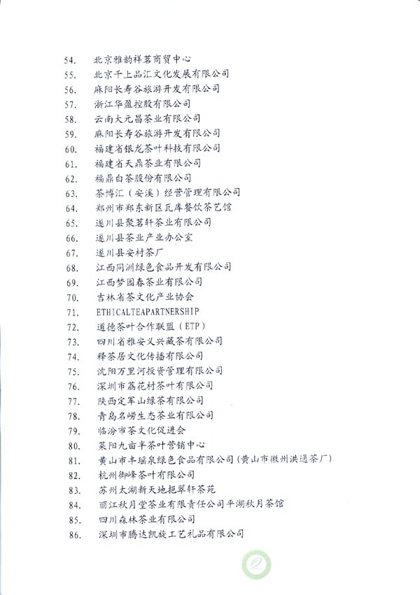 关于公示“中国茶叶行业优秀诚信企业”名单的通知