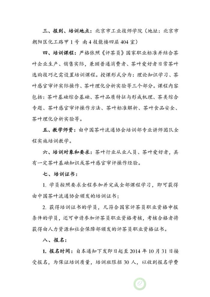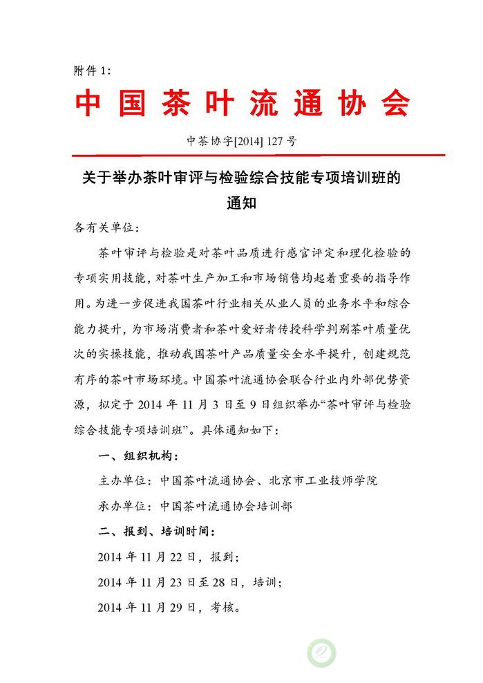 关于调整茶叶审评与检验综合技能专项培训班时间的通知