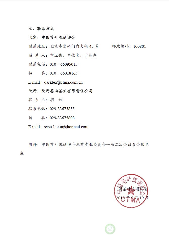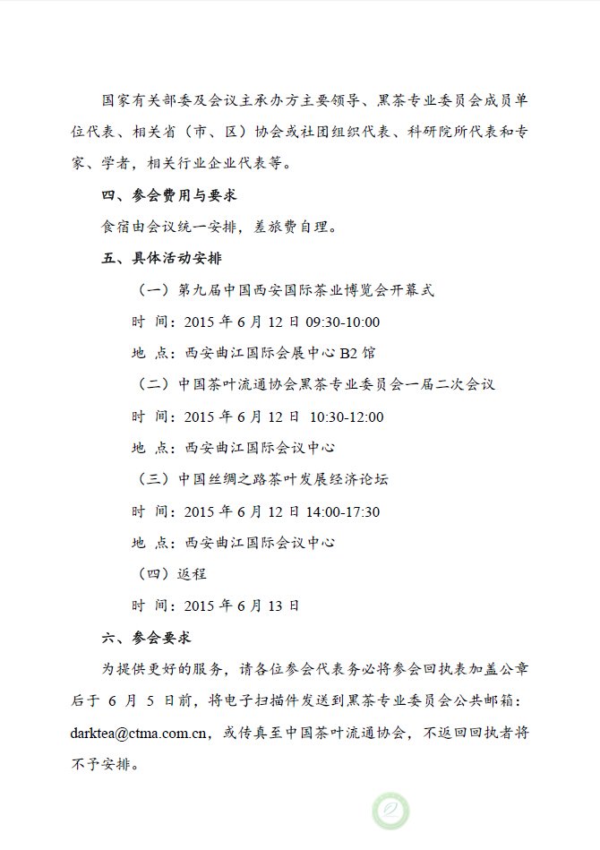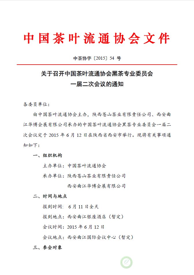 关于召开中国茶叶流通协会黑茶专业委员会一届二次会议的通知