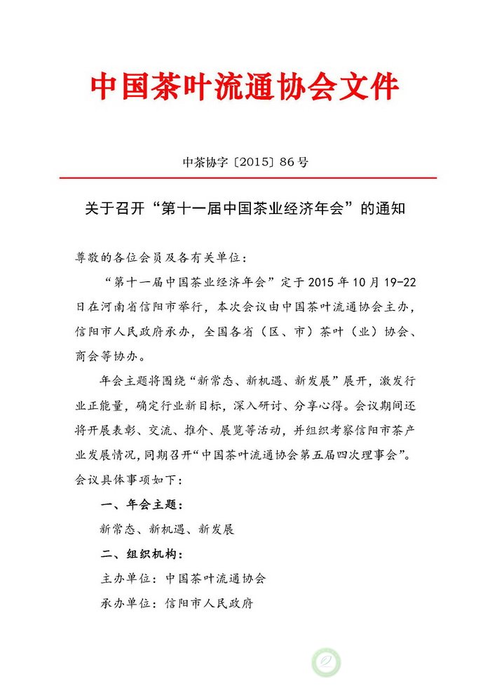 中国茶叶流通协会茶包装专业委员会一届二次会议通知