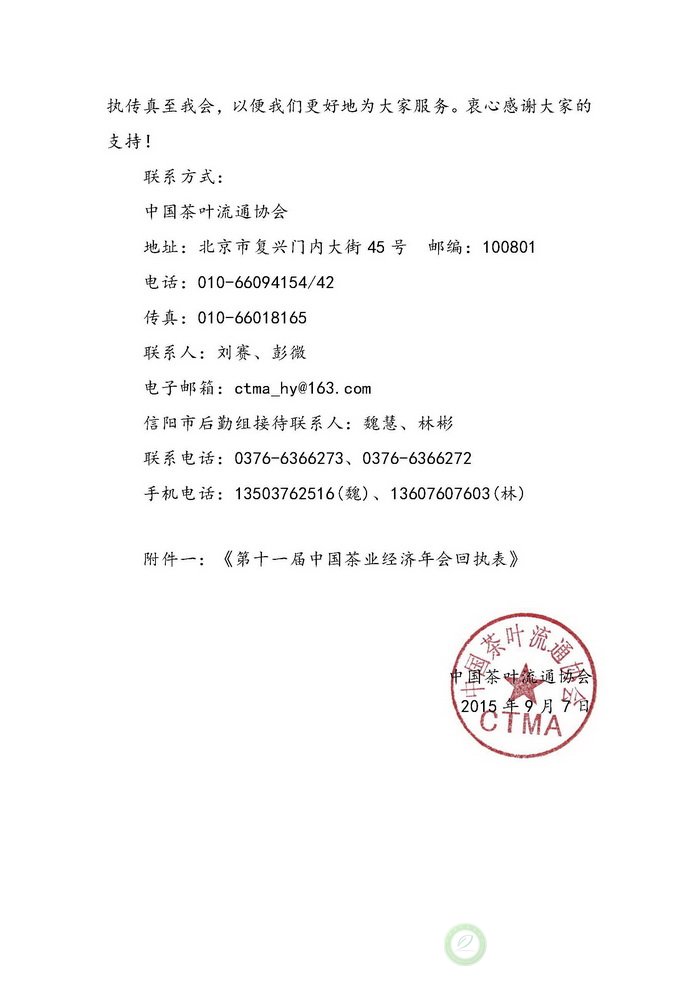 关于公示《2015中国茶业综合实力百强企业候选名单》的通知