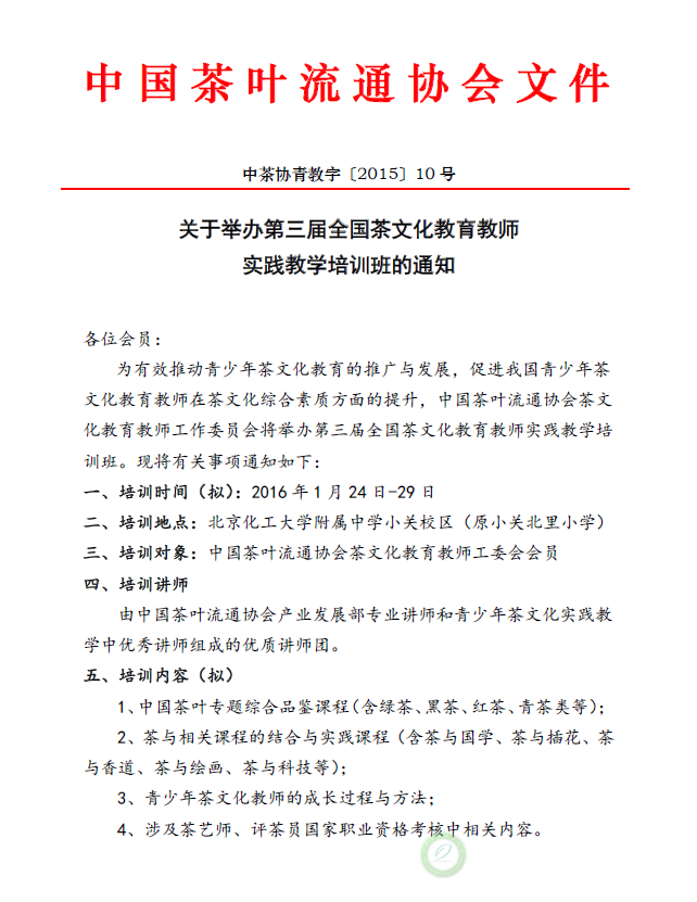 关于举办第三届全国茶文化教育教师实践教学培训班的通知