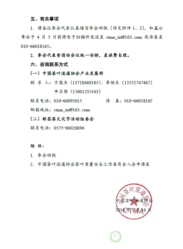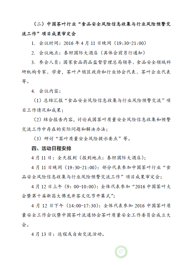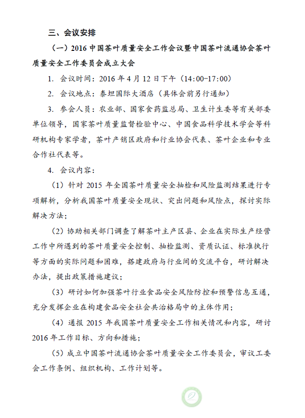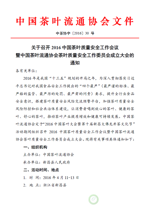 关于召开2016中国茶叶质量安全工作会议暨中国茶叶流通协会茶叶质量安全工作委员会成立大会