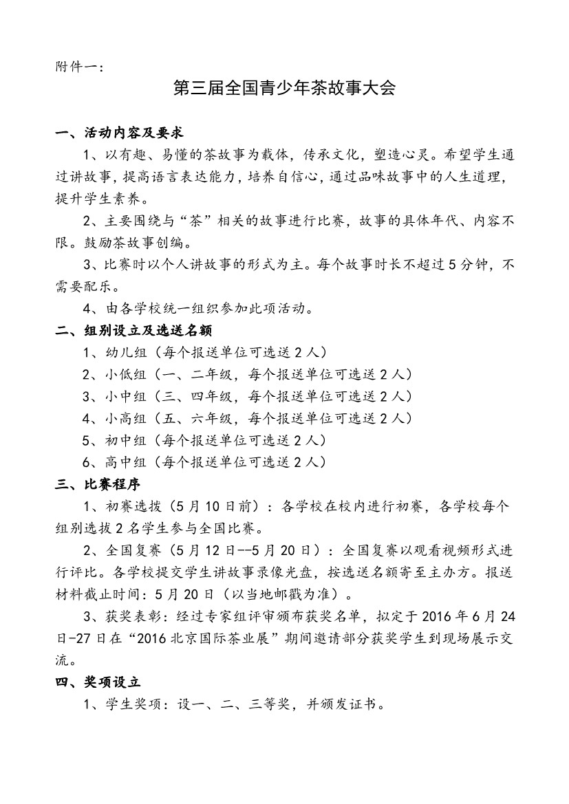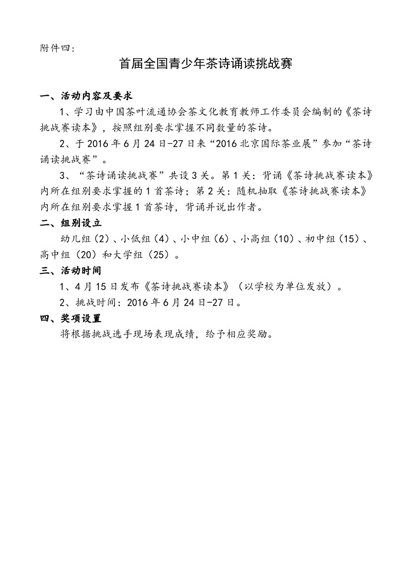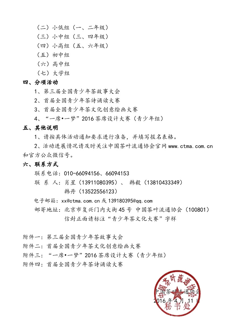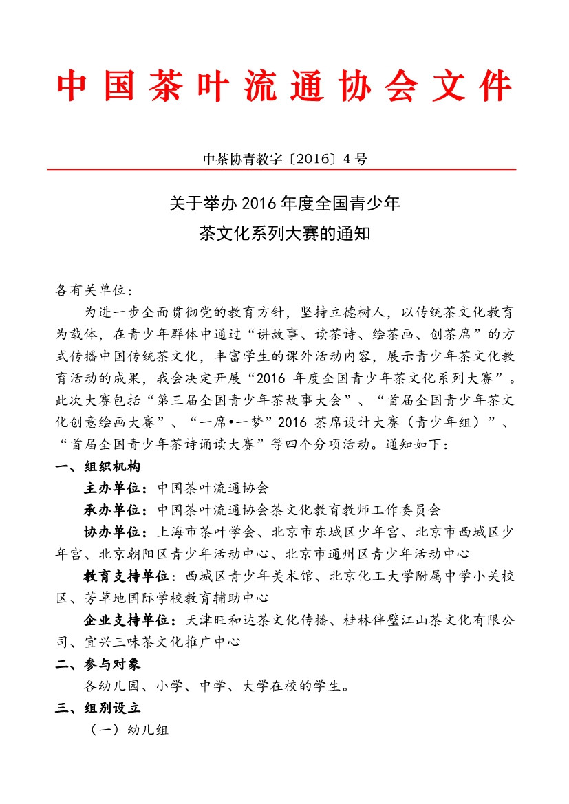 关于举办2016年度全国青少年茶文化系列大赛的通知