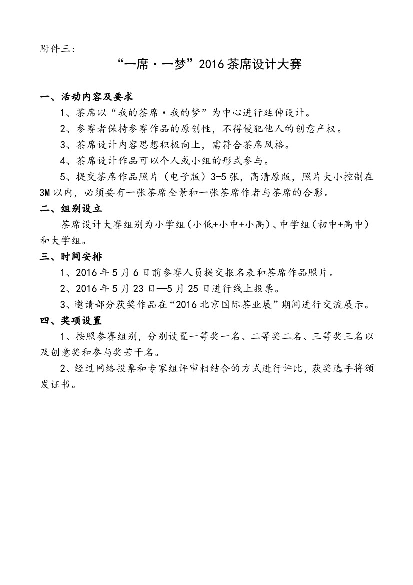 关于开展“一席·一梦”2016茶席设计大赛的通知