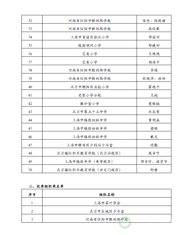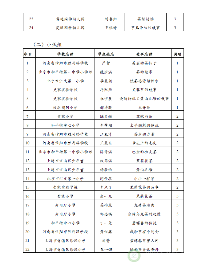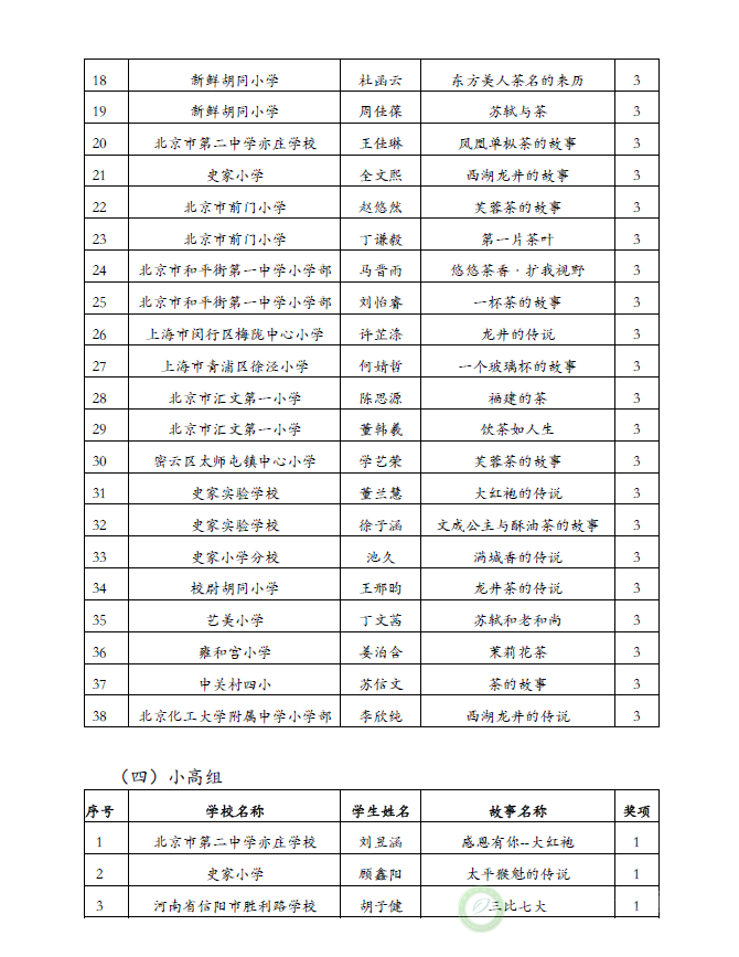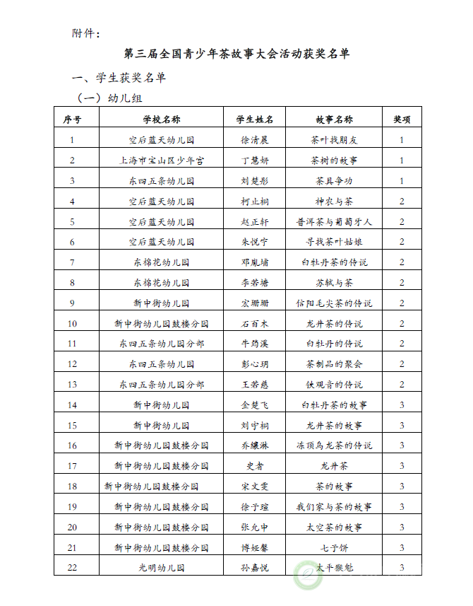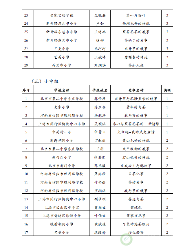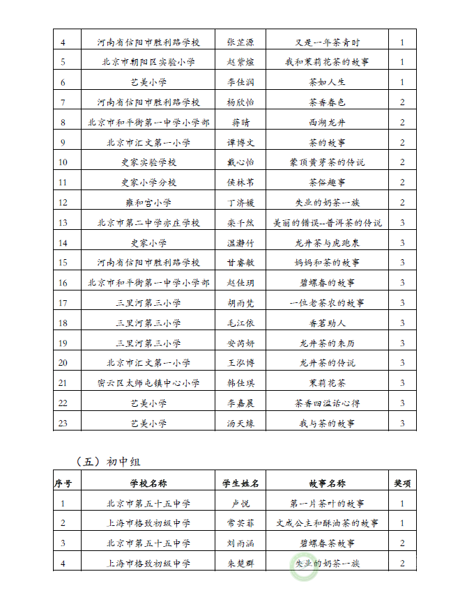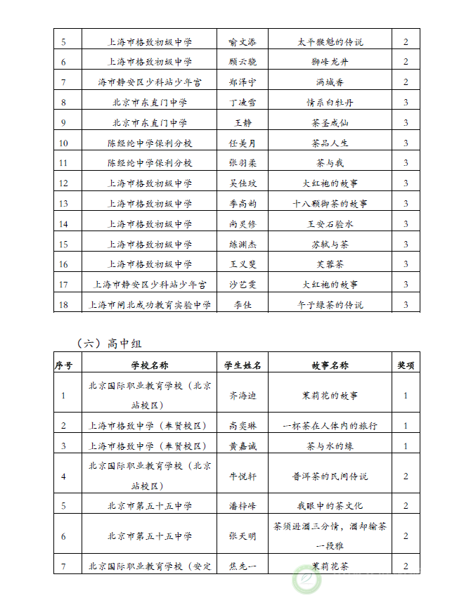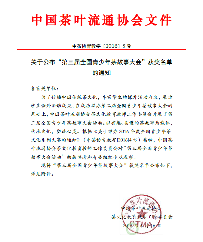 关于公布“第三届全国青少年茶故事大会”获奖名单的通知