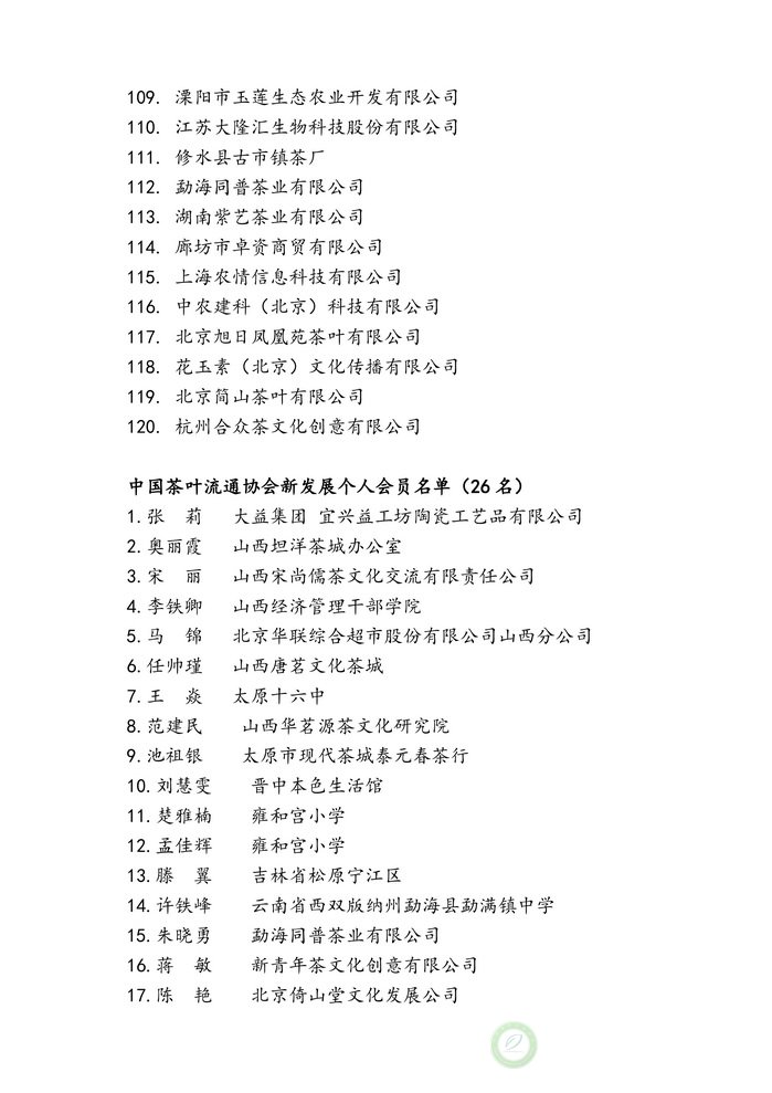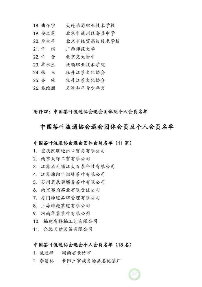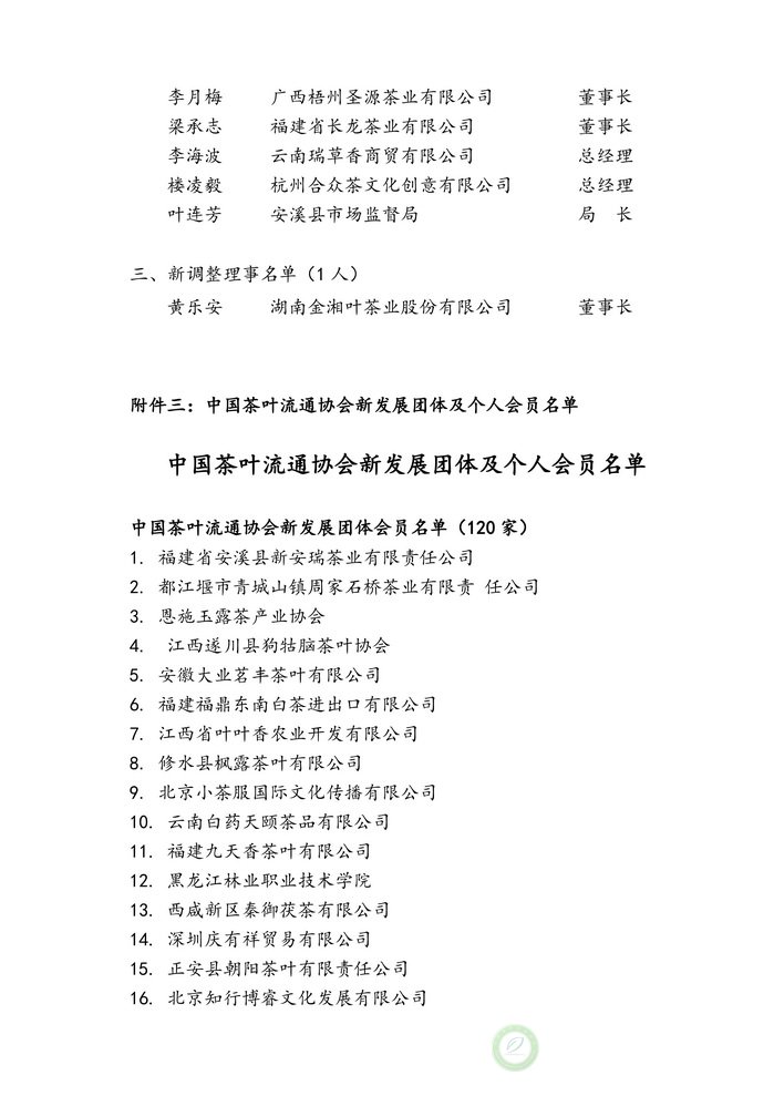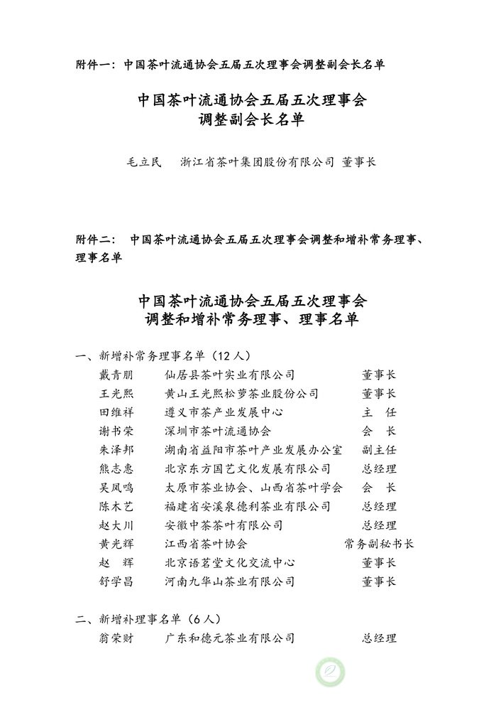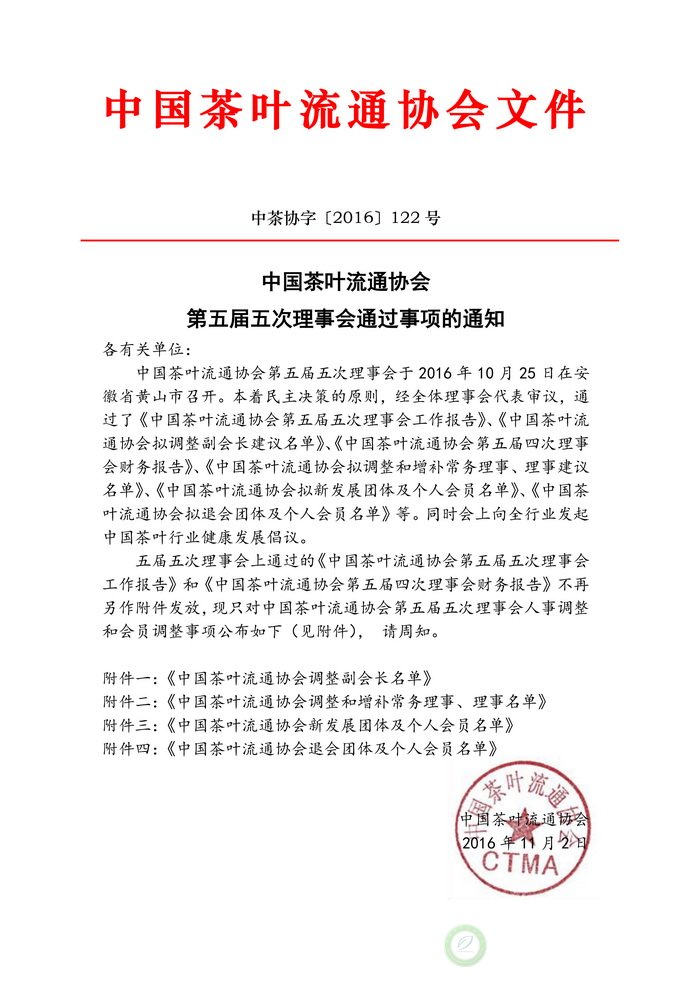 中国茶叶流通协会五届五次理事会通过事项