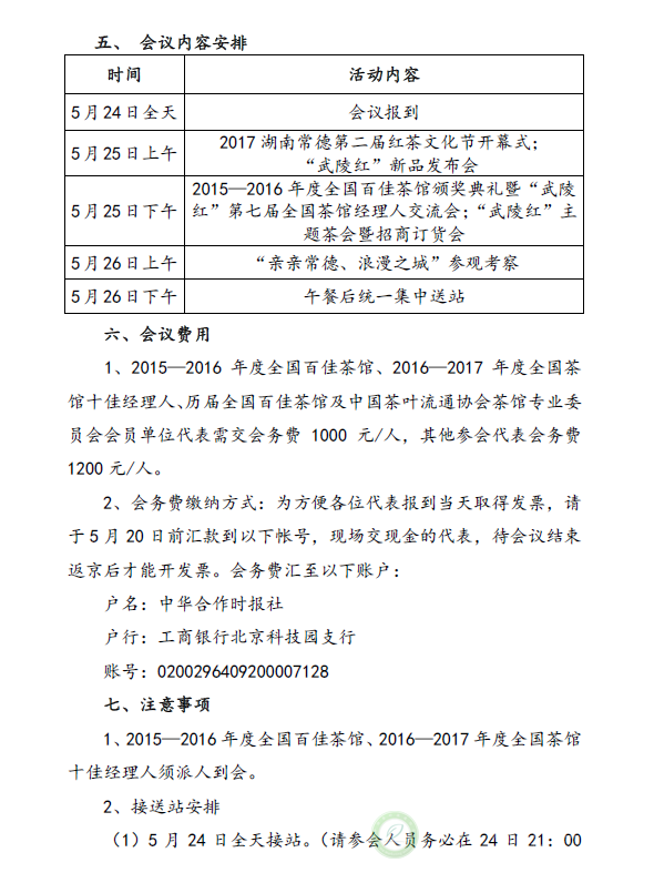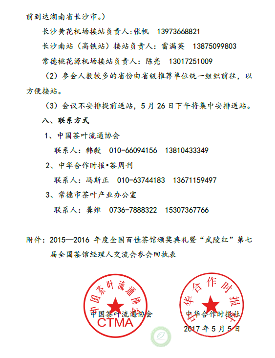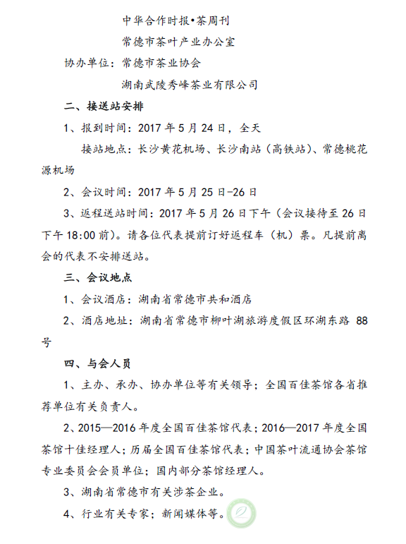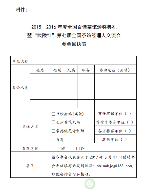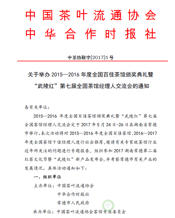 关于举办2015—2016年度全国百佳茶馆颁奖典礼暨 “武陵红”第七届全国茶馆经理人交流会的通