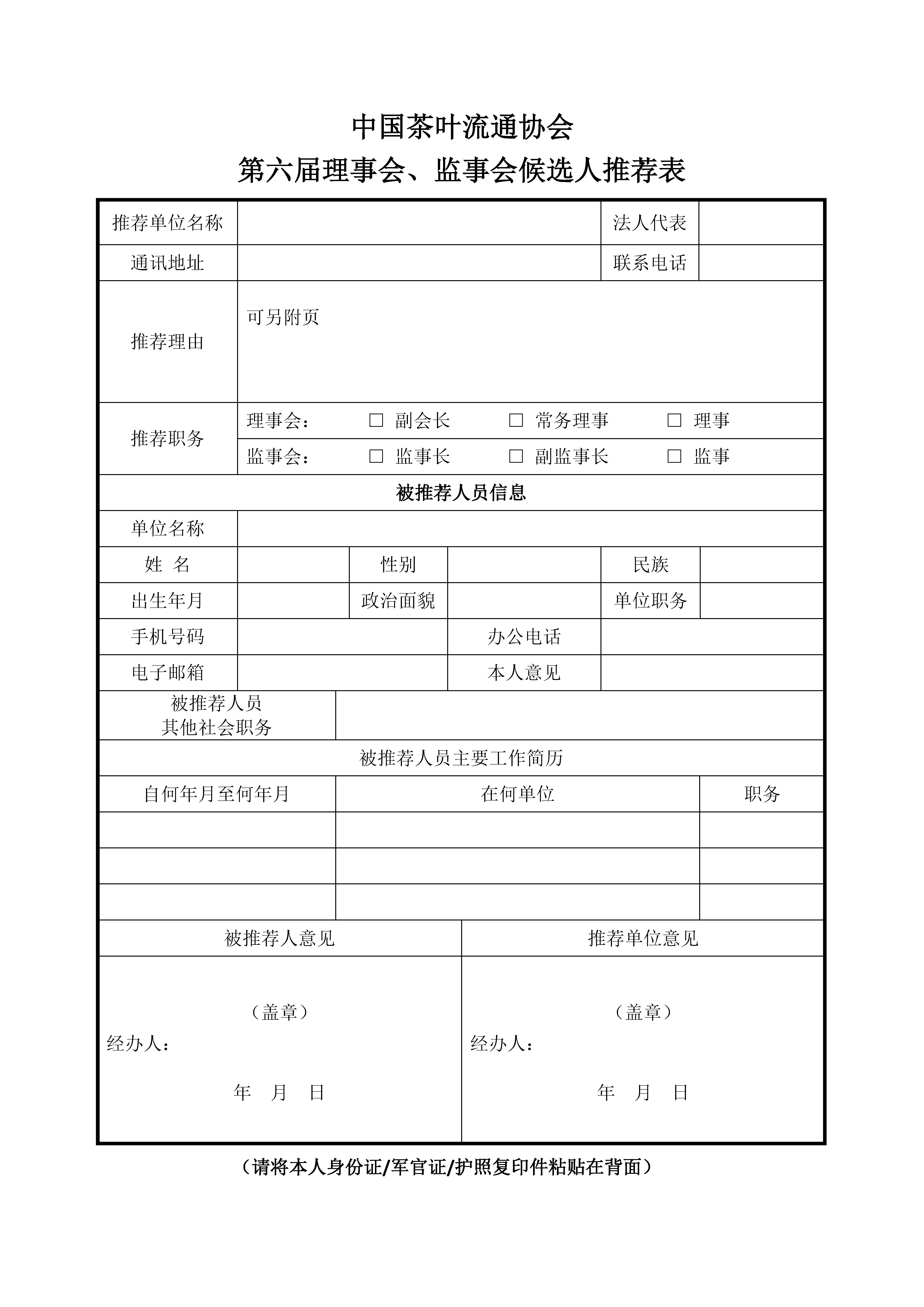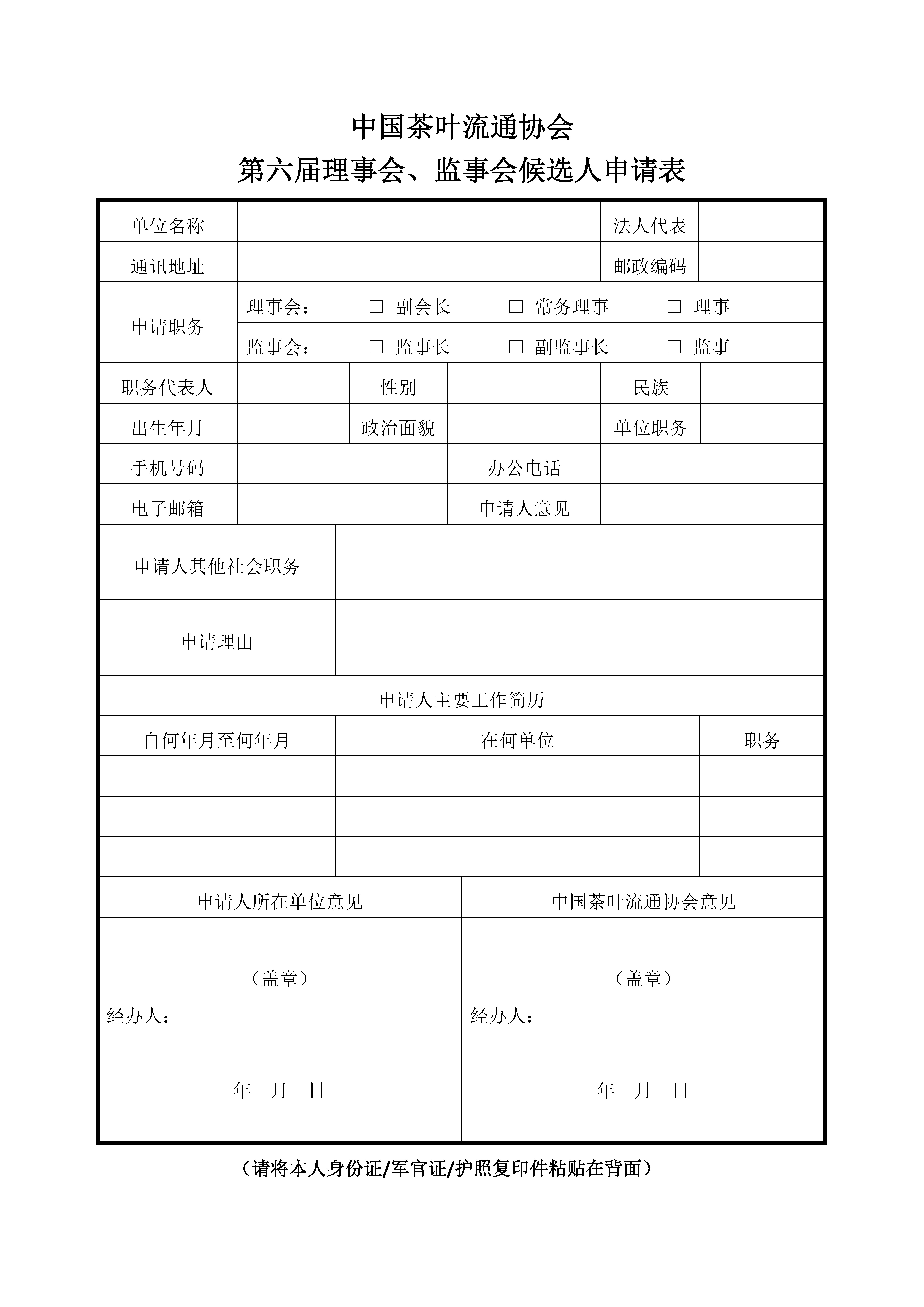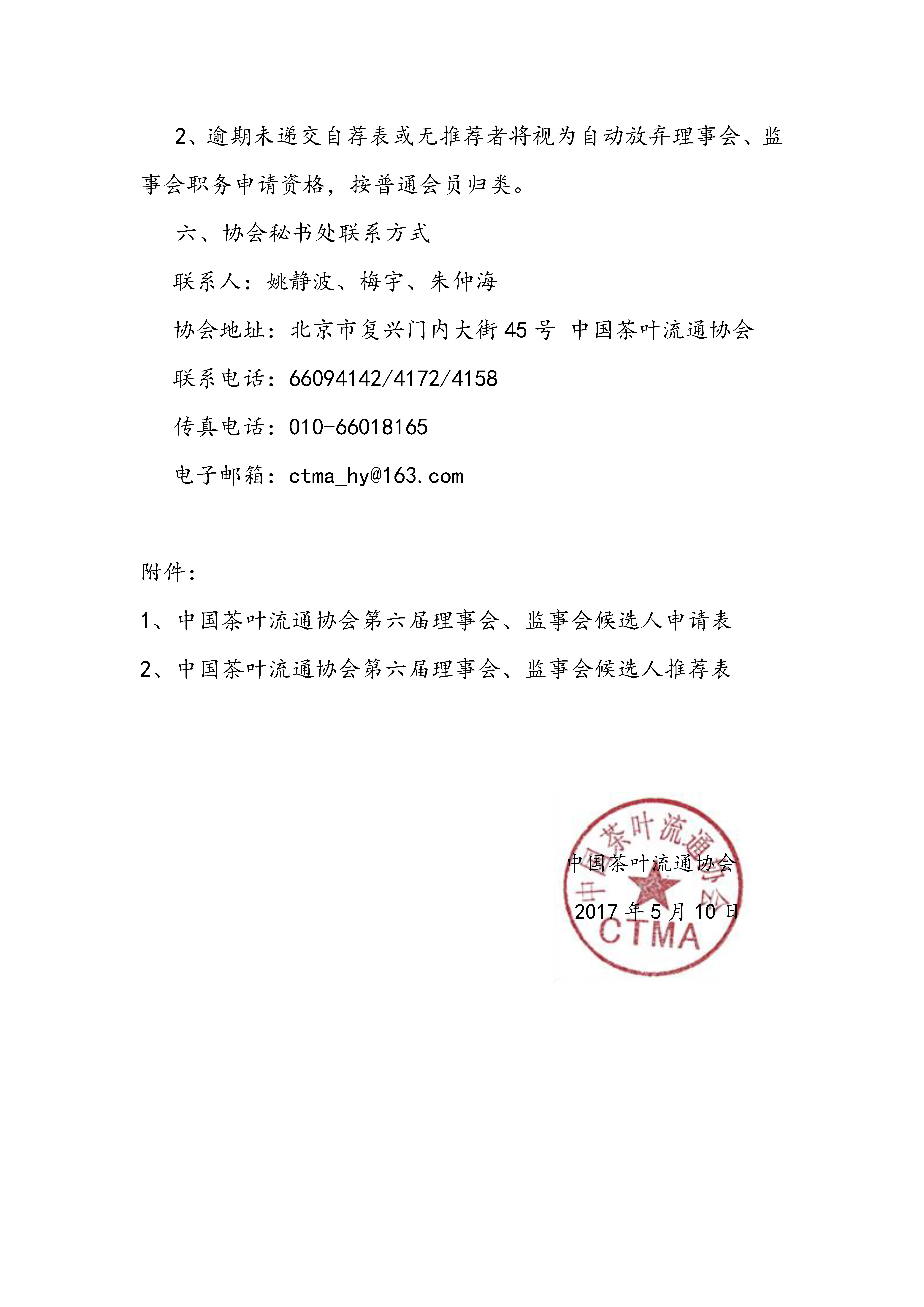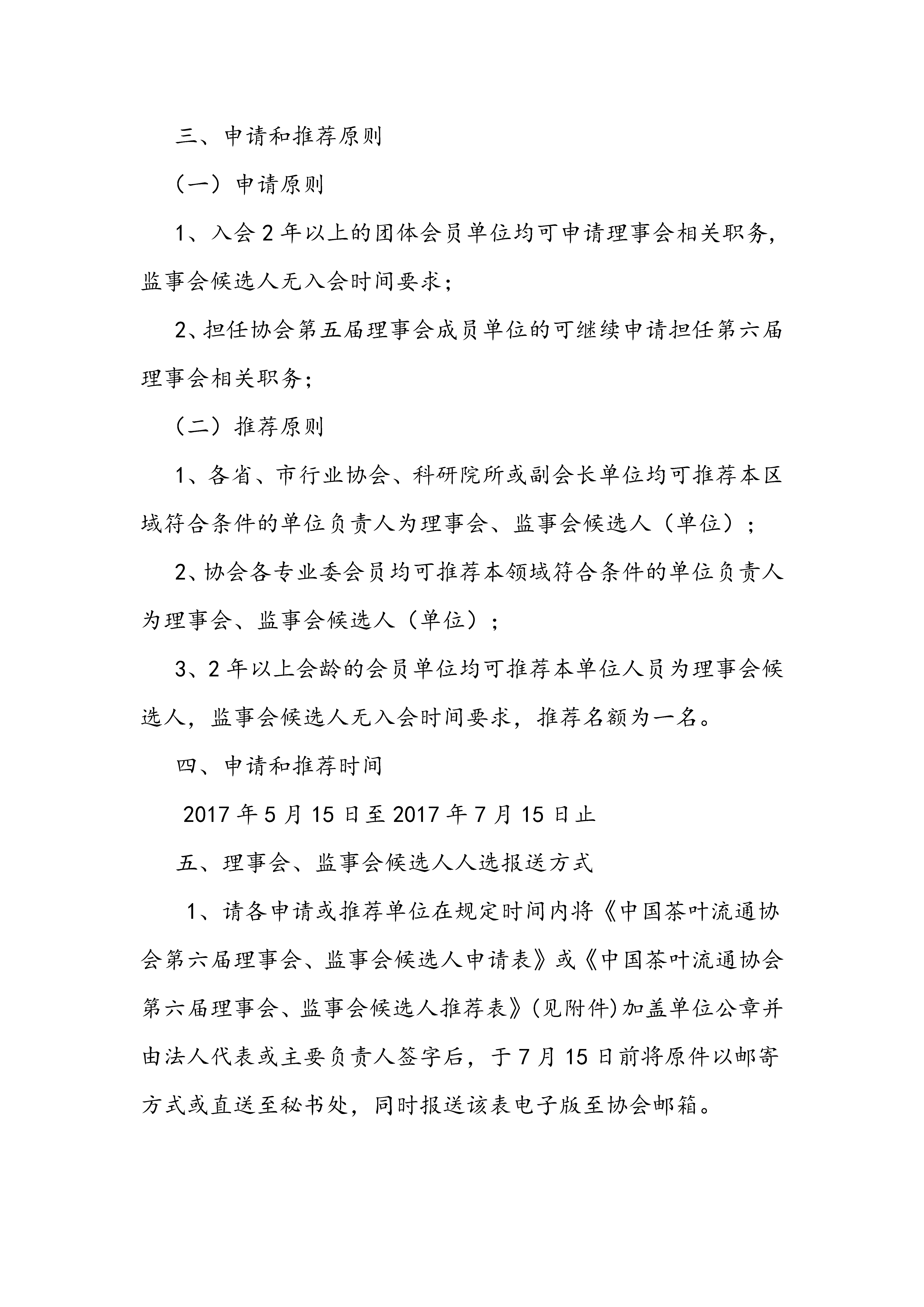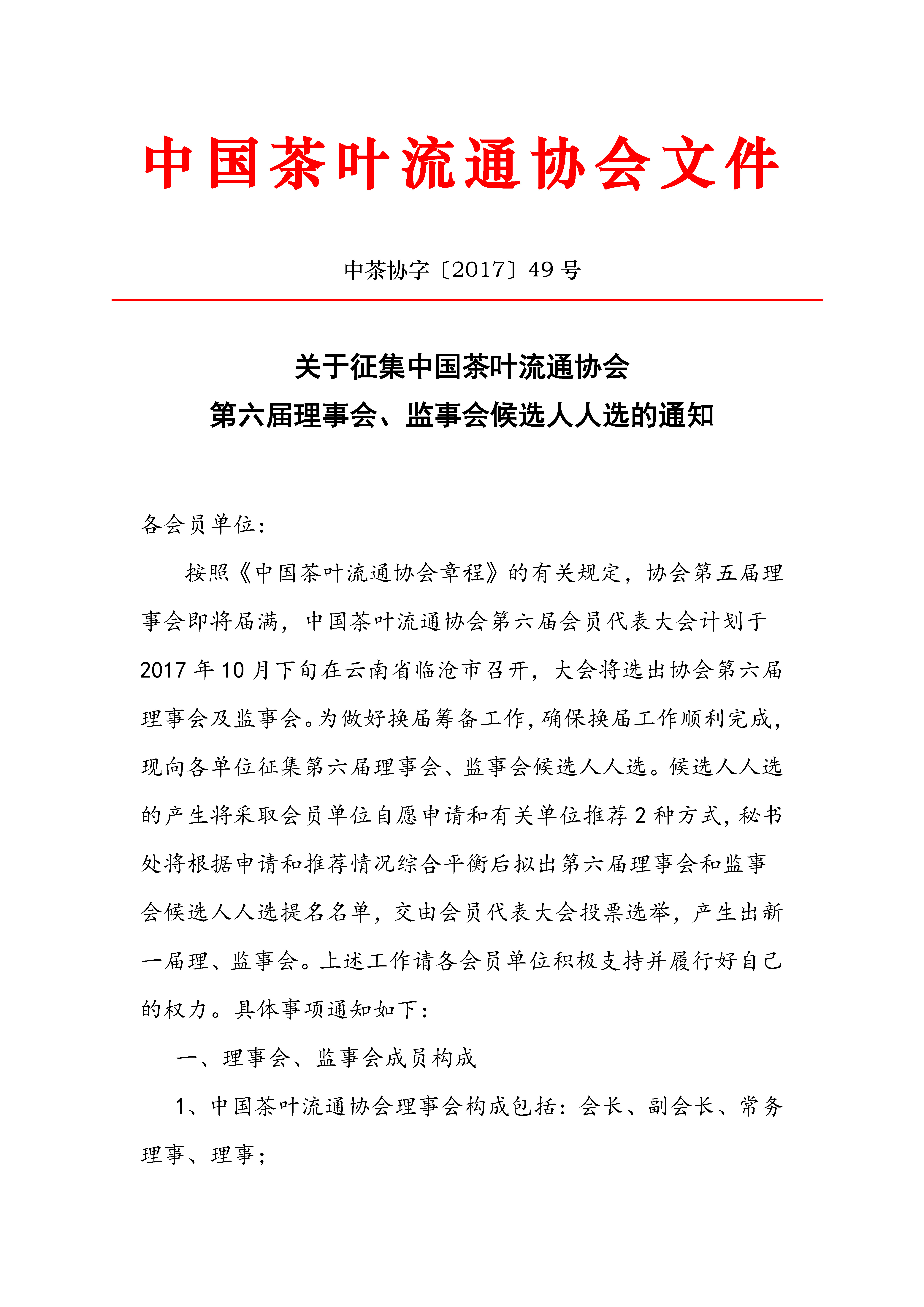 关于征集中国茶叶流通协会第六届理事会、监事会候选人人选的通知