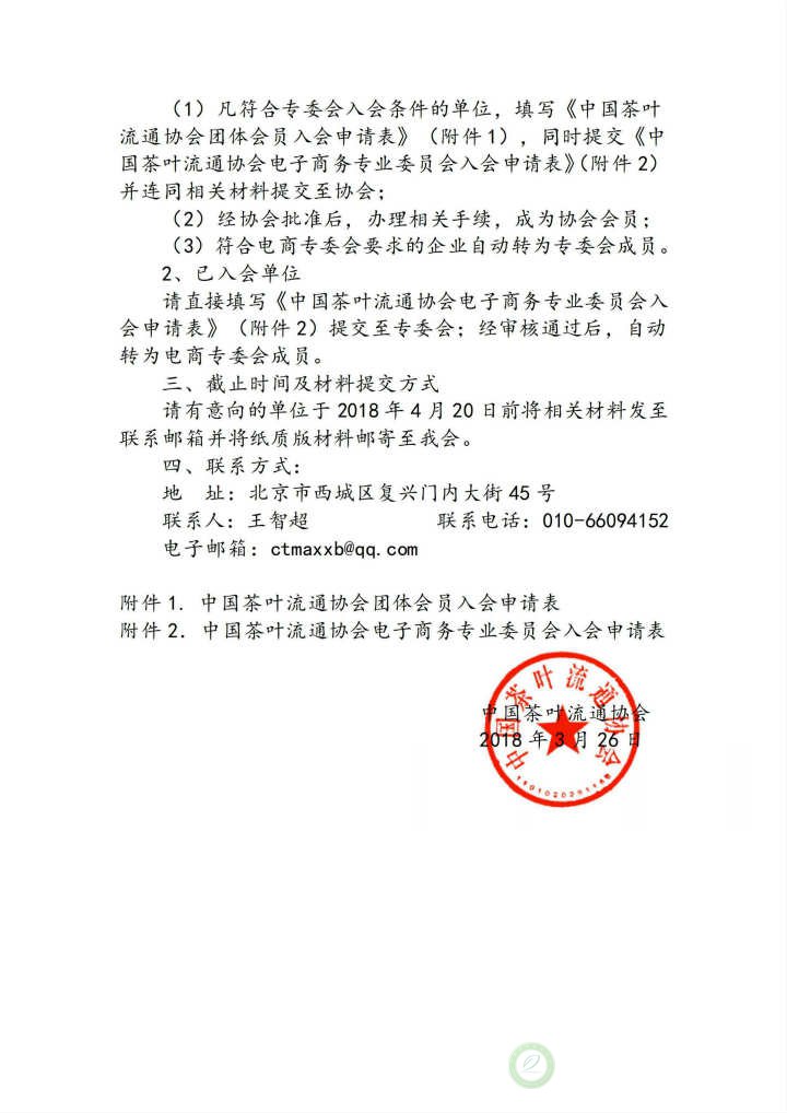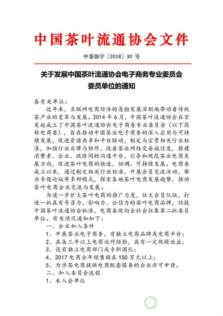关于发展中国茶叶流通协会电子商务专业委员会委员单位的通知