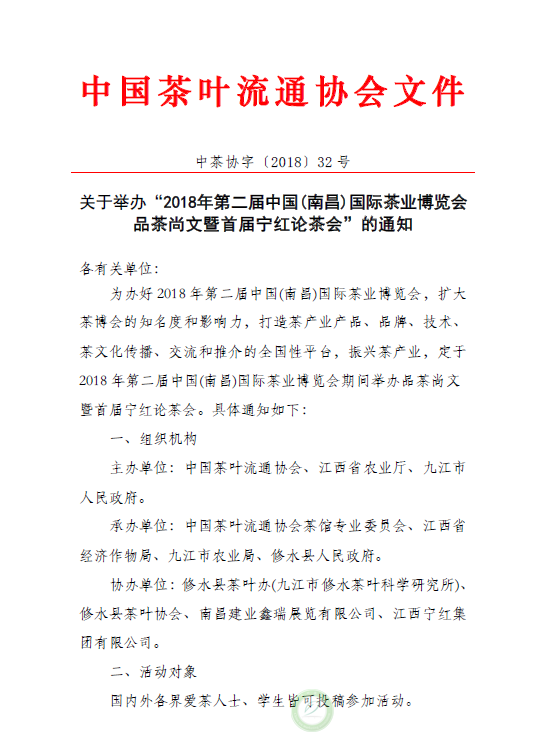 关于举办“2018年第二届中国(南昌)国际茶业博览会 品茶尚文暨首届宁红论茶会”的通知