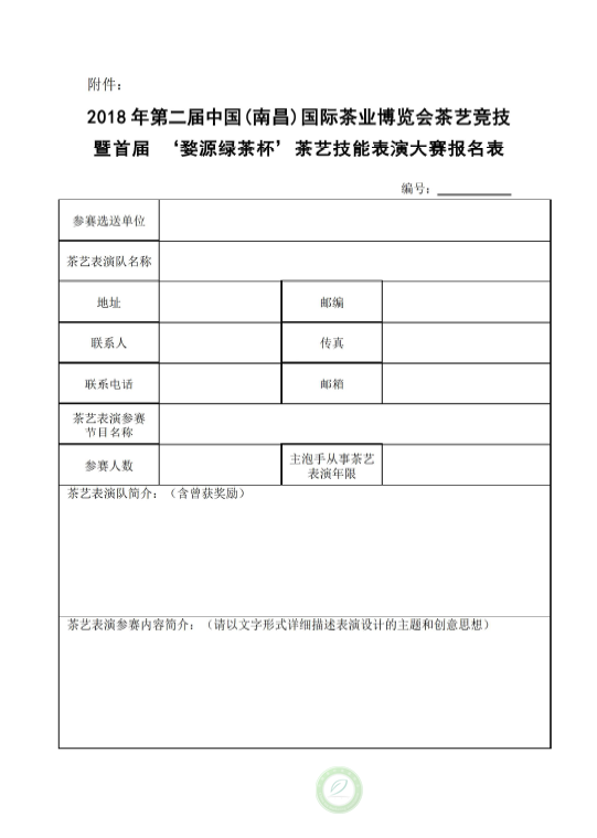 关于举办2018年第二届中国(南昌)国际茶业 博览会茶艺竞技暨首届 ‘婺源绿茶杯’茶艺技能 表