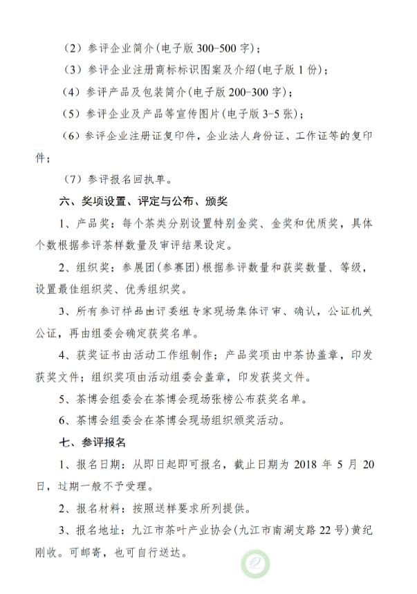 关于邀请参加2018年第二届中国(南昌)国际茶业博览会暨第五届庐山问茶会茶叶推荐活动的通