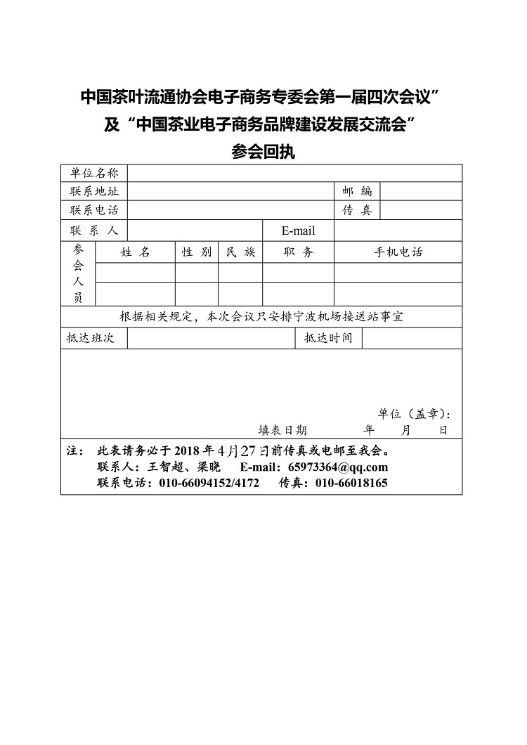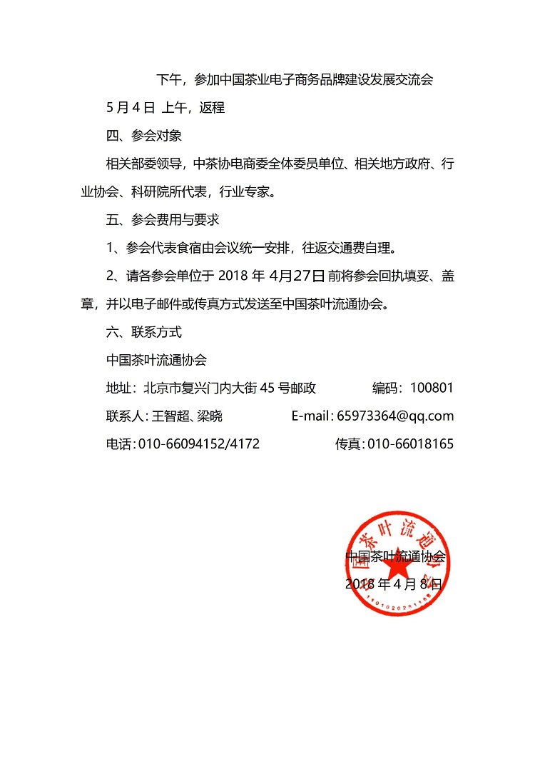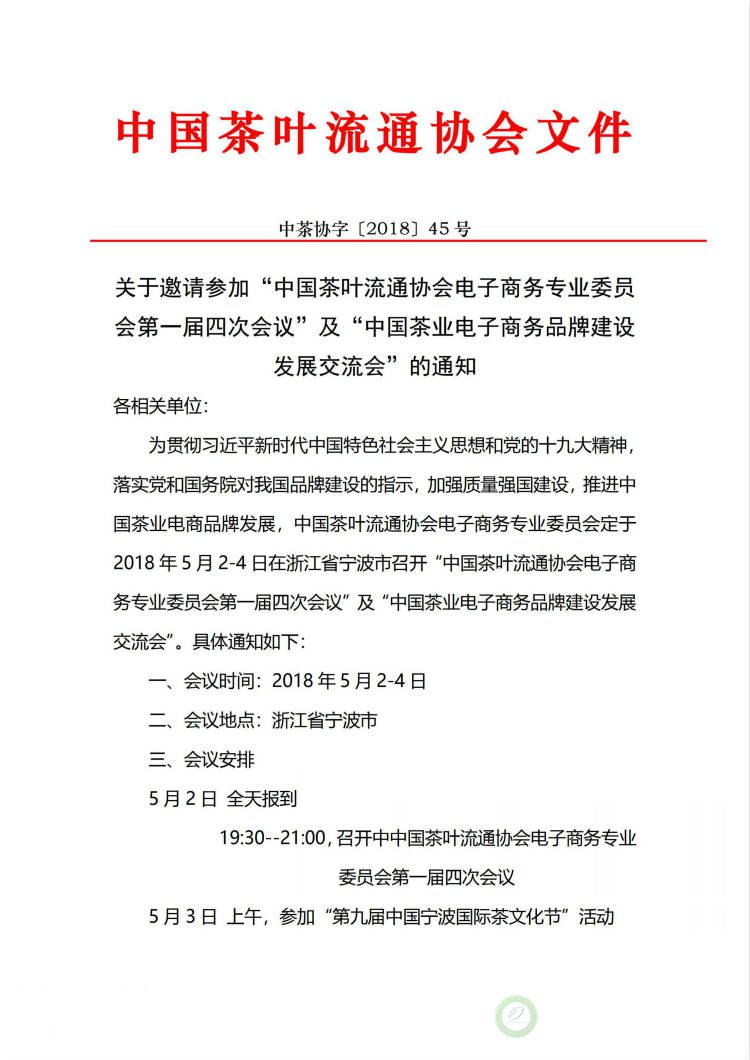 关于邀请参加“中国茶叶流通协会电子商务专业委员会第一届四次会议”及“中国茶业电子商