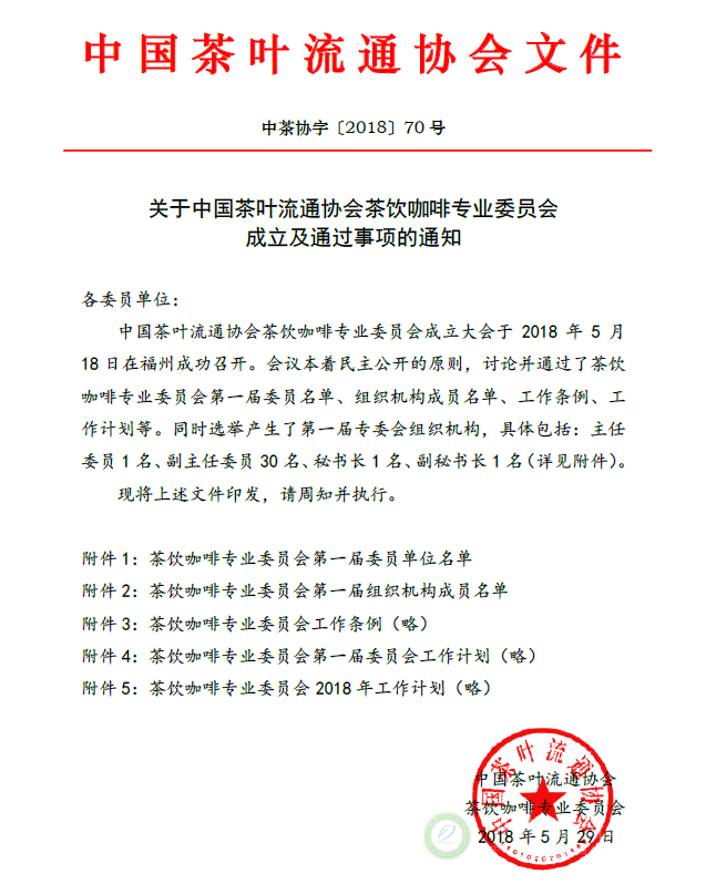 关于中国茶叶流通协会茶饮咖啡专业委员会成立及通过事项的通知