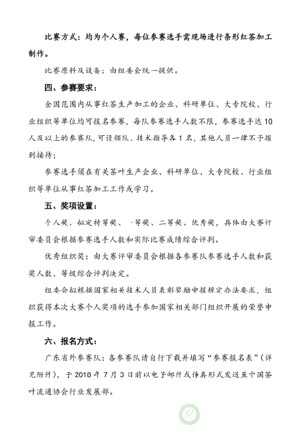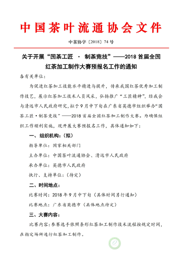 关于开展“国茶工匠 • 制茶竞技”——2018全国红茶加工制作大赛预报名工作的通知
