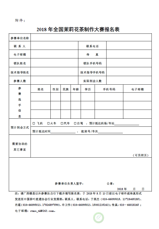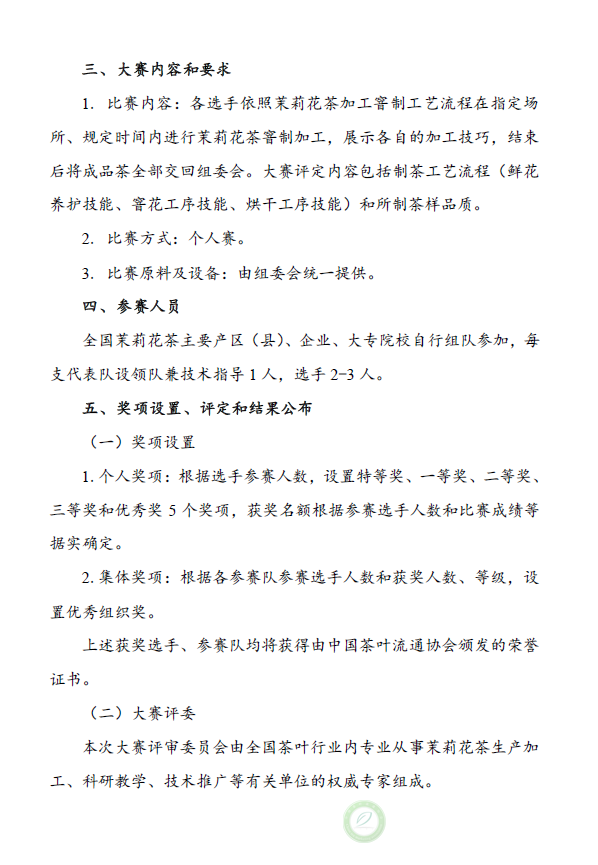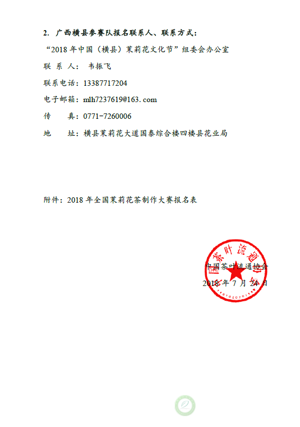 关于举办2018年全国茉莉花茶制作大赛的通知