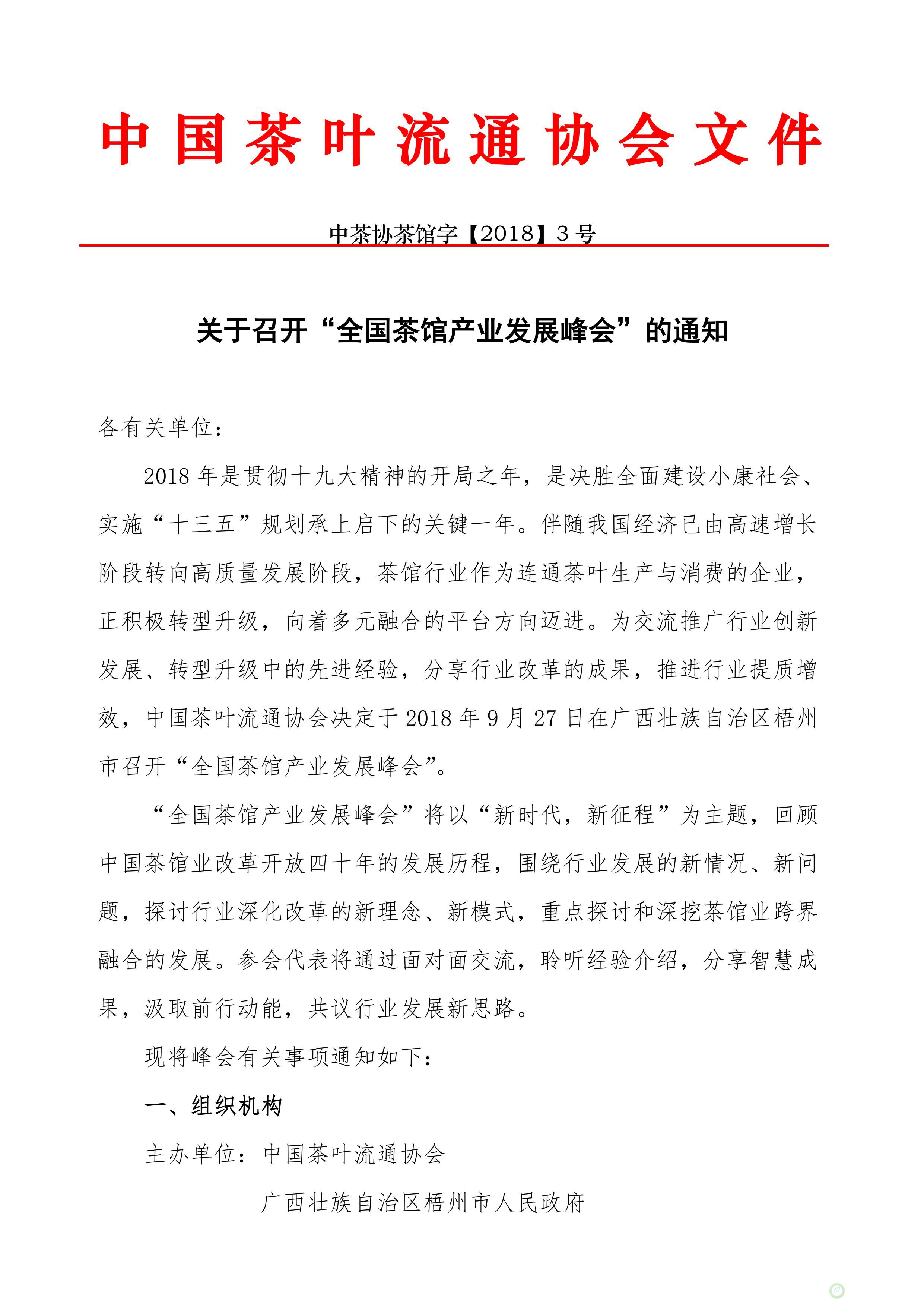 关于召开中国茶叶流通协会茶馆专业委员会换届会暨三届一次工作会议的通知