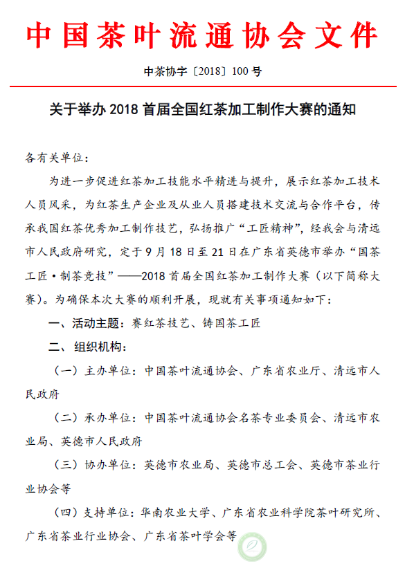 关于邀请参加“2018(秋季)北京国际茶业展”的通知