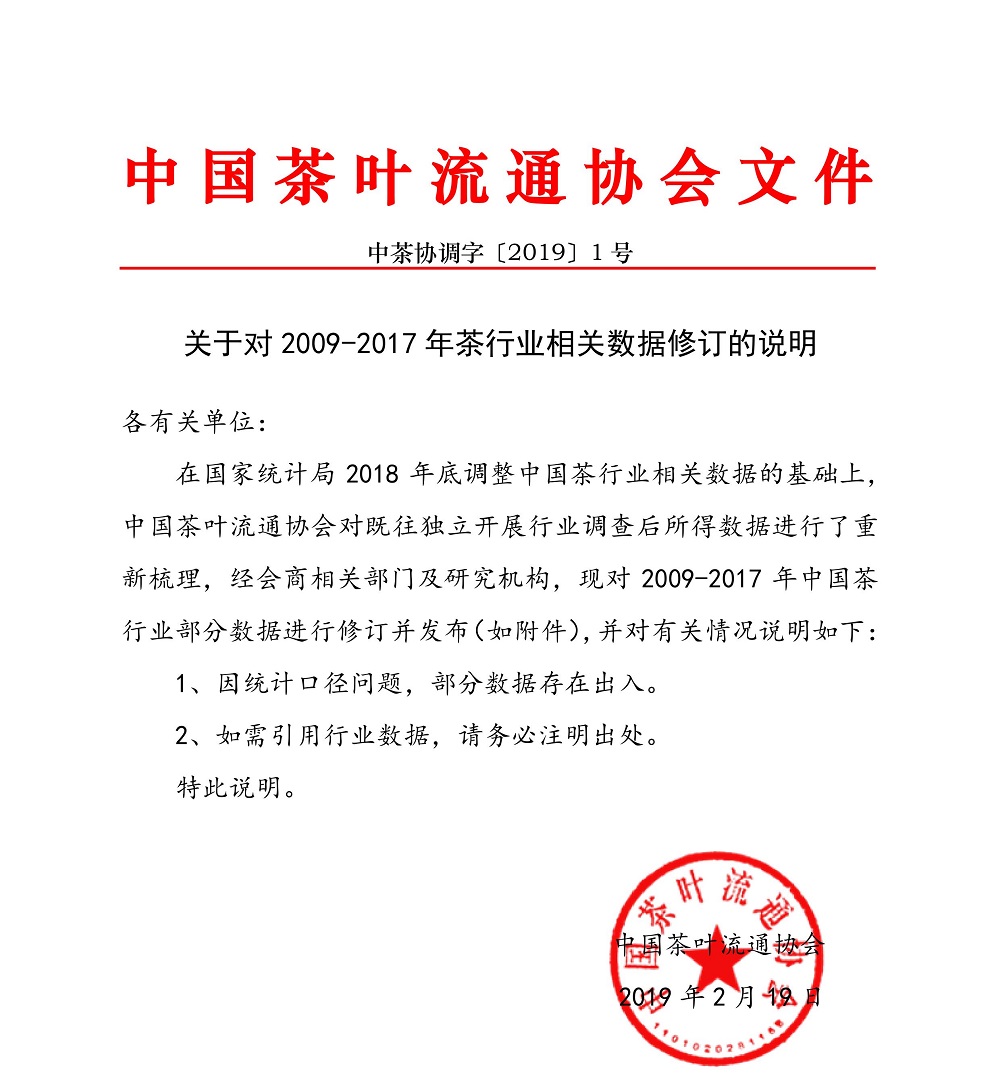 关于对2009-2017年茶行业相关数据修订的说明