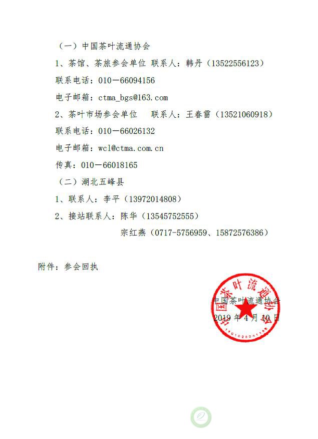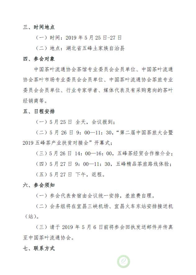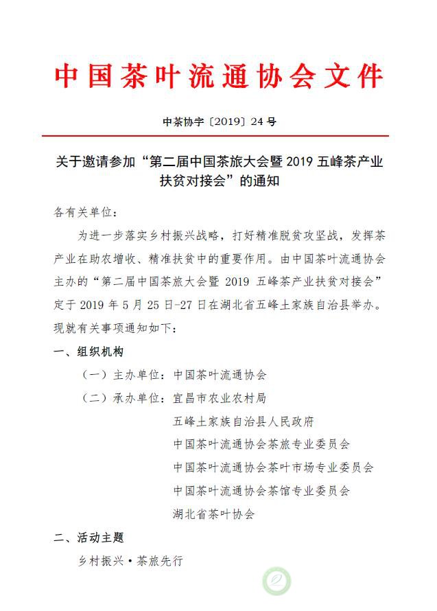 关于邀请参加“第二届中国茶旅大会暨2019五峰茶产业扶贫对接会”的通知