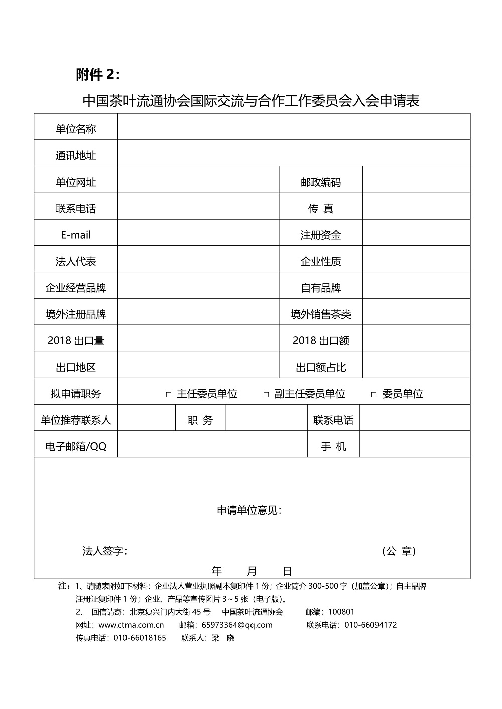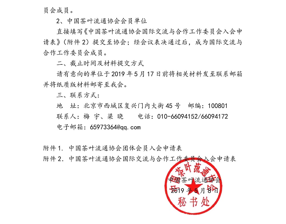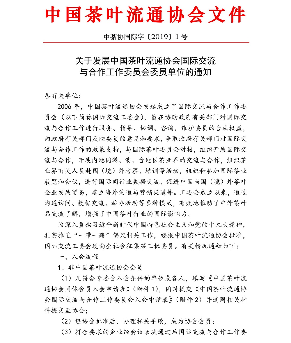 关于发展中国茶叶流通协会国际交流与合作工作委员会委员单位的通知
