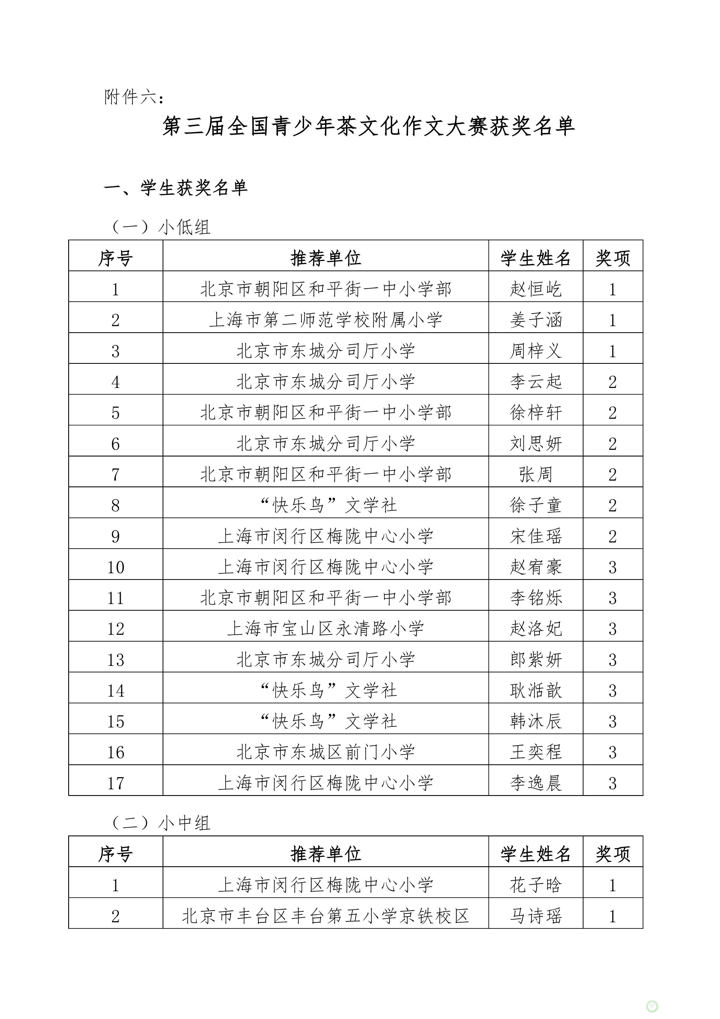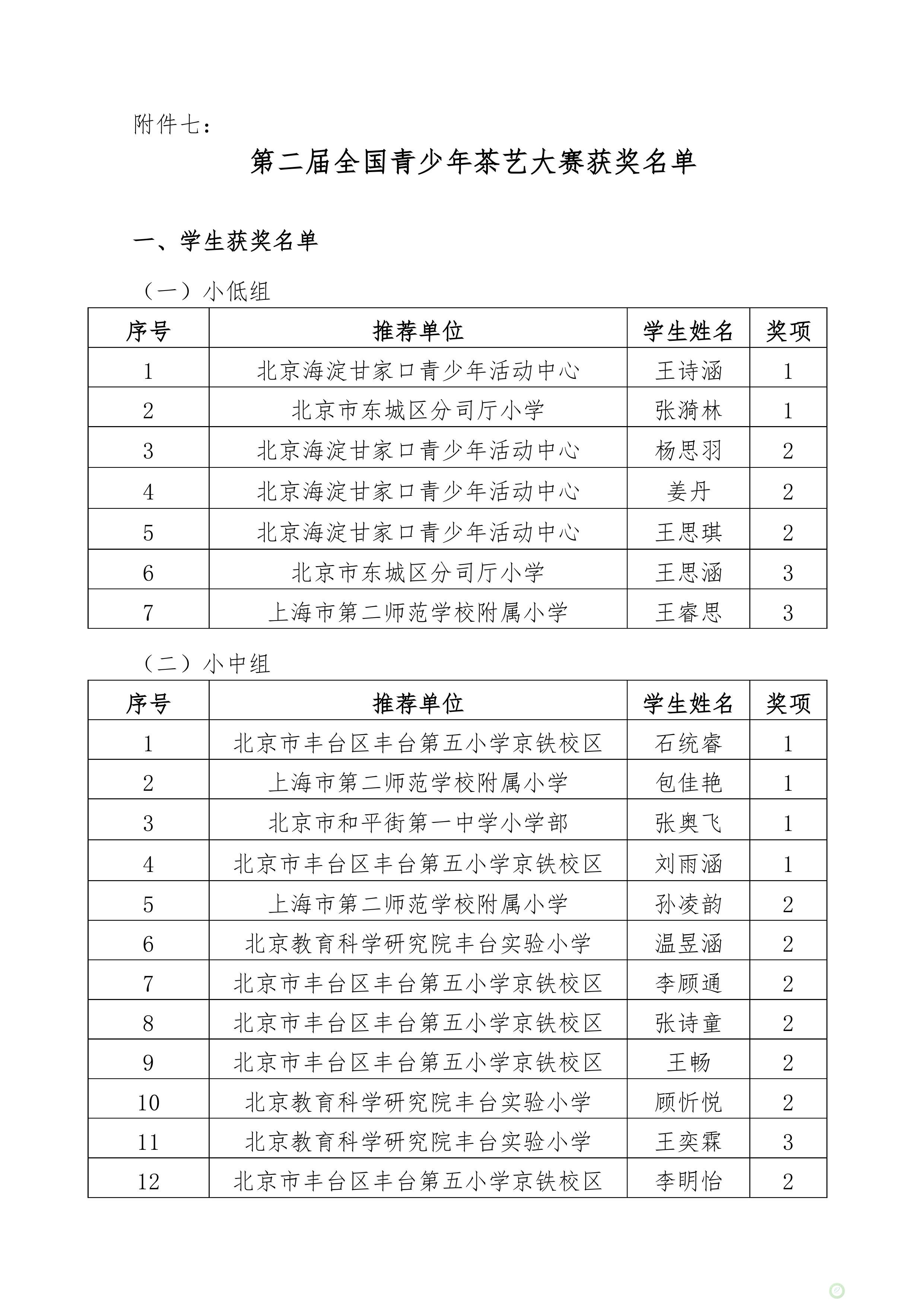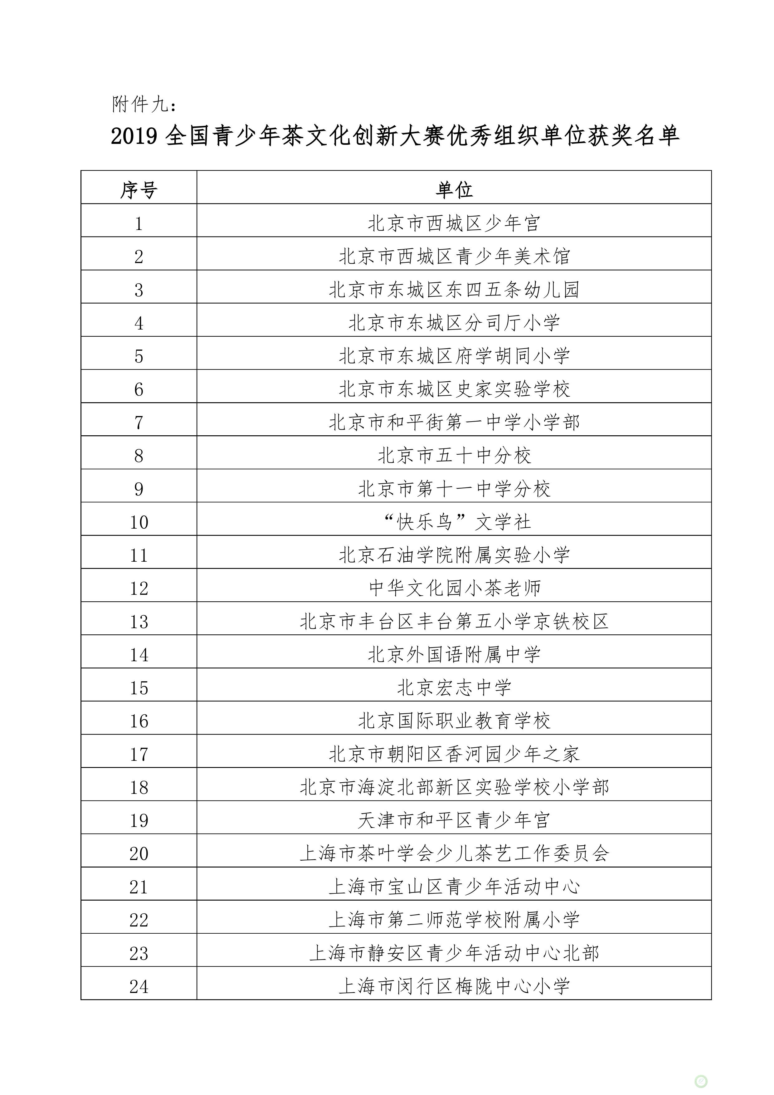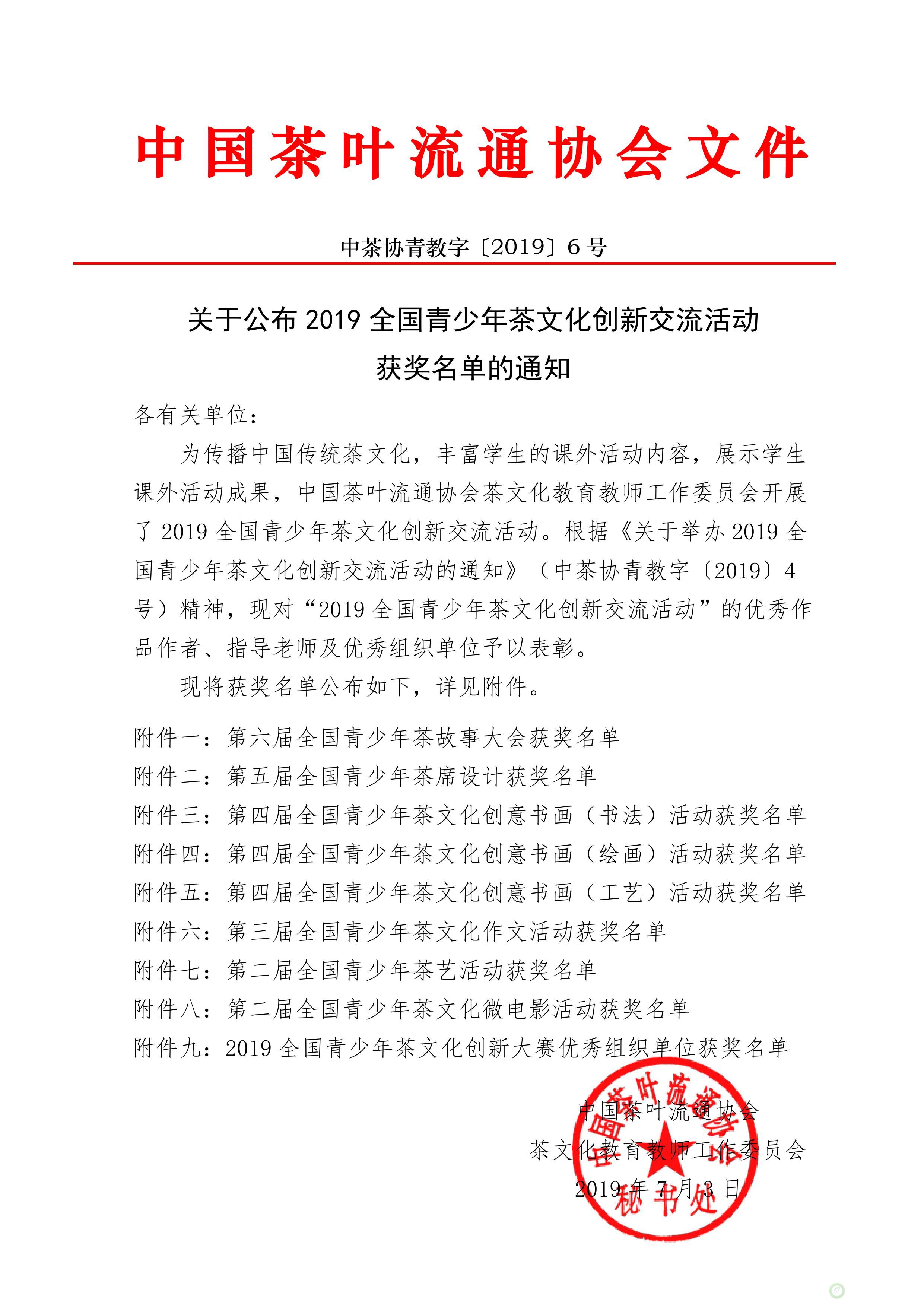 关于公布2019全国青少年茶文化创新交流活动获奖名单的通知
