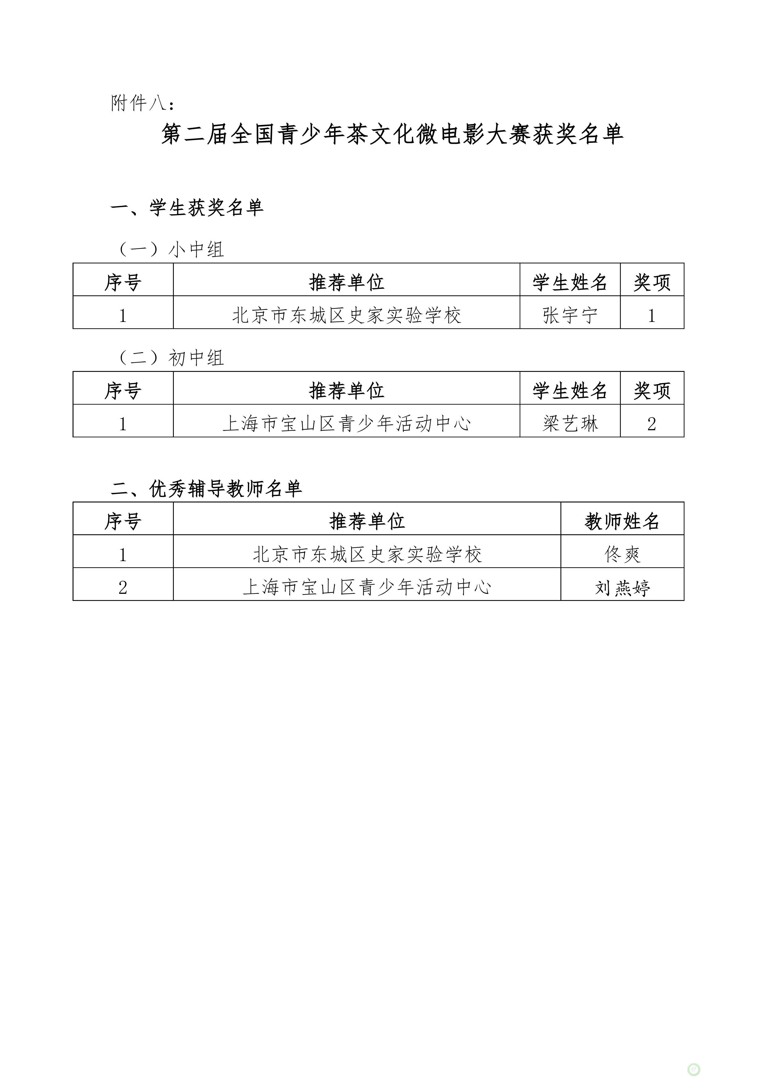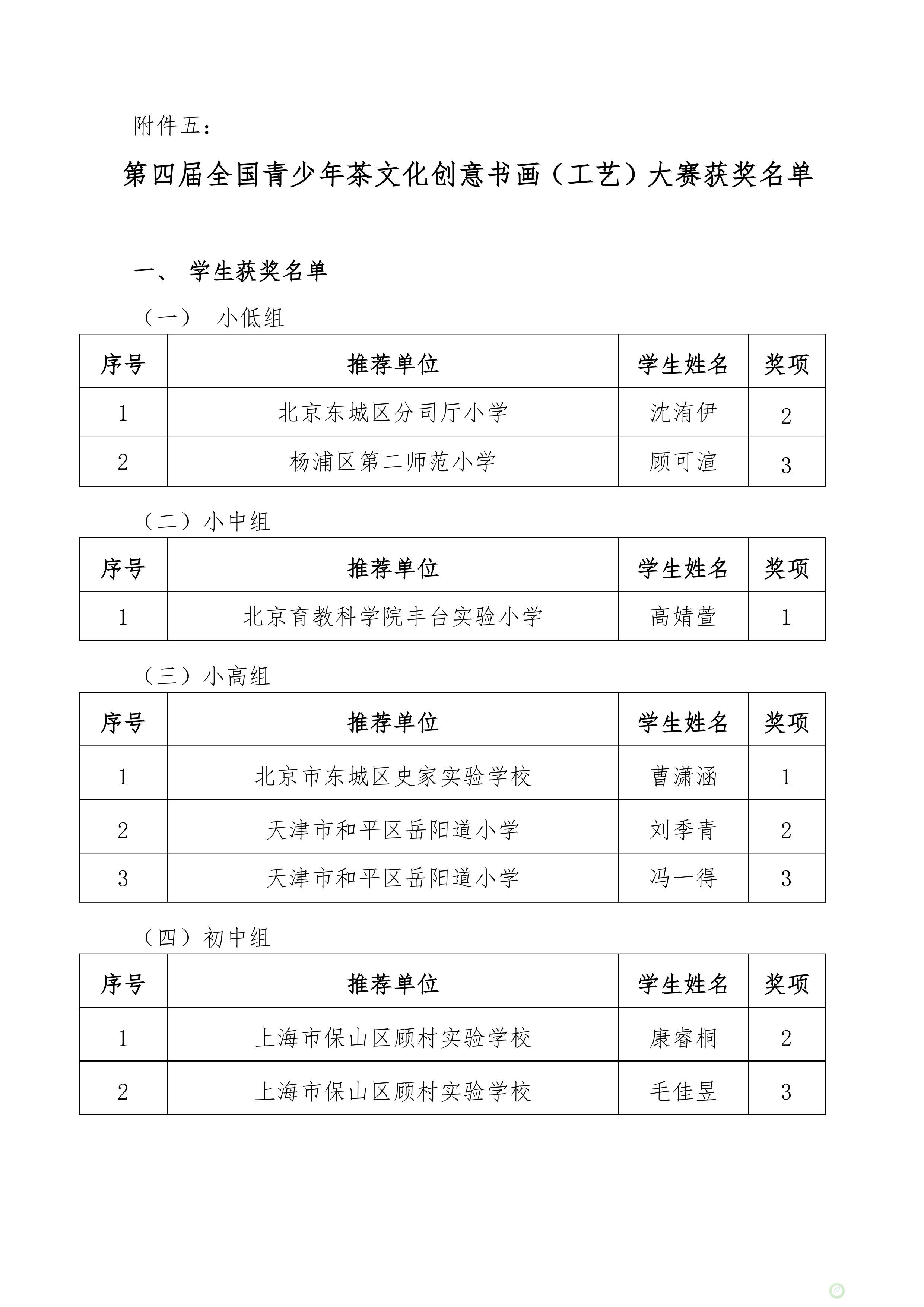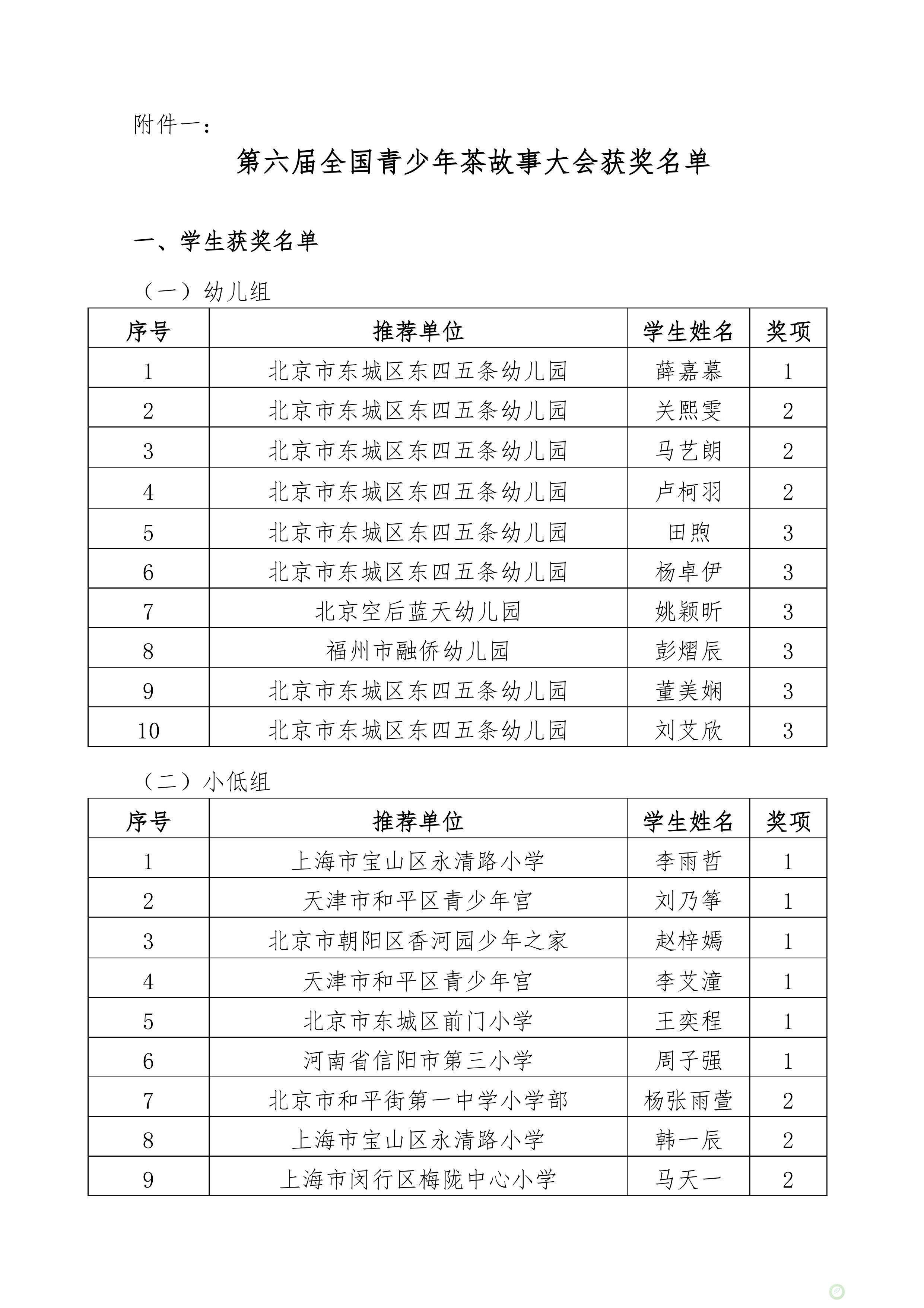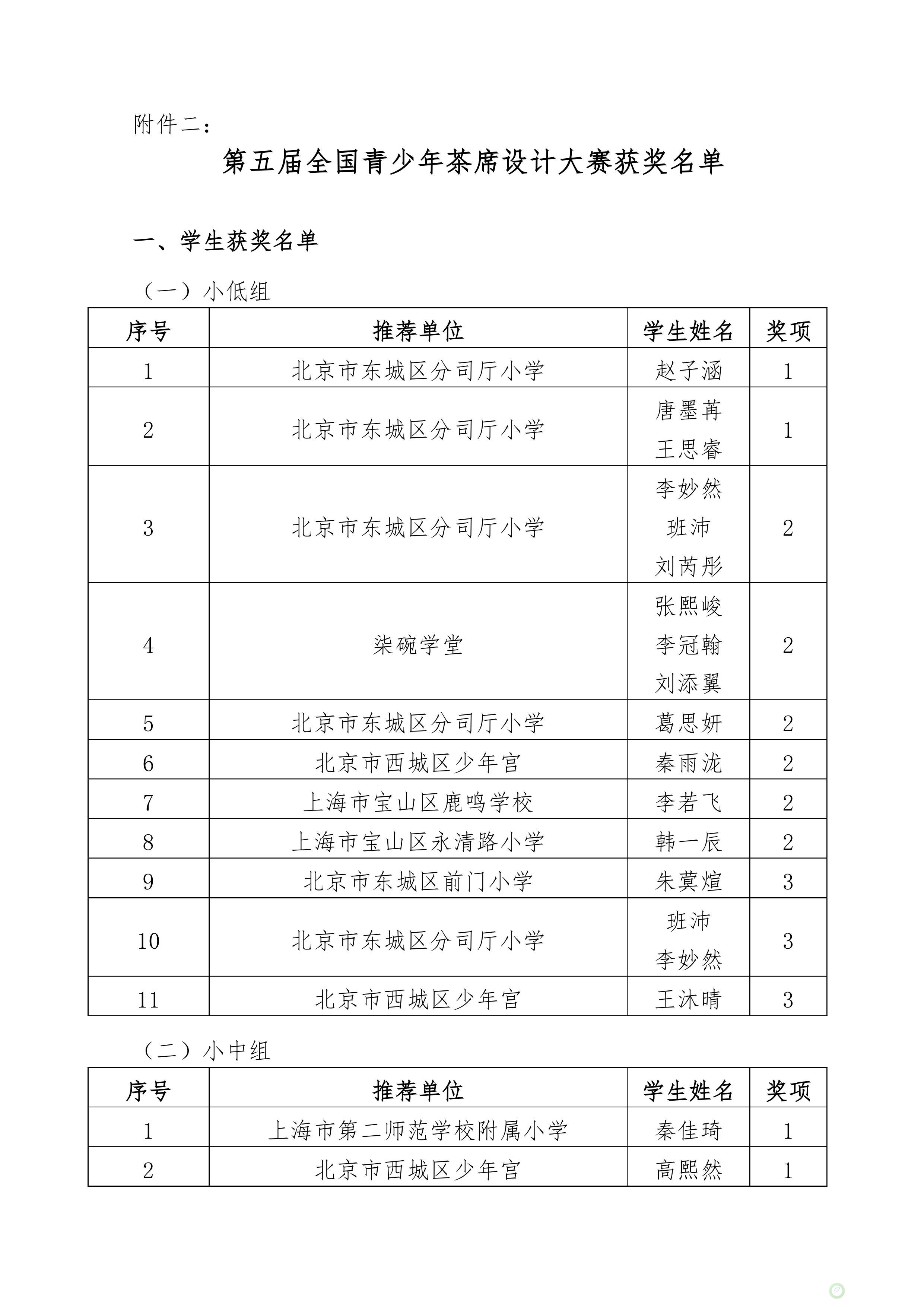 关于公布2019全国青少年茶文化创新交流活动获奖名单的通知