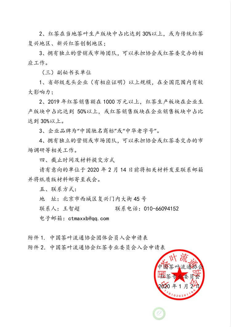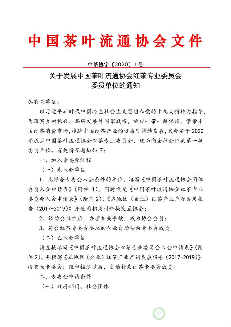 关于发展中国茶叶流通协会红茶专业委员会委员单位的通知