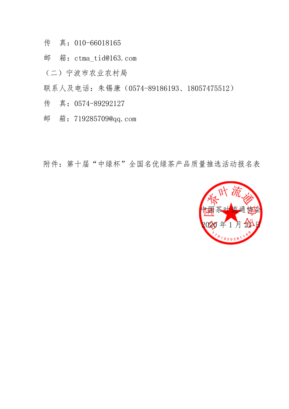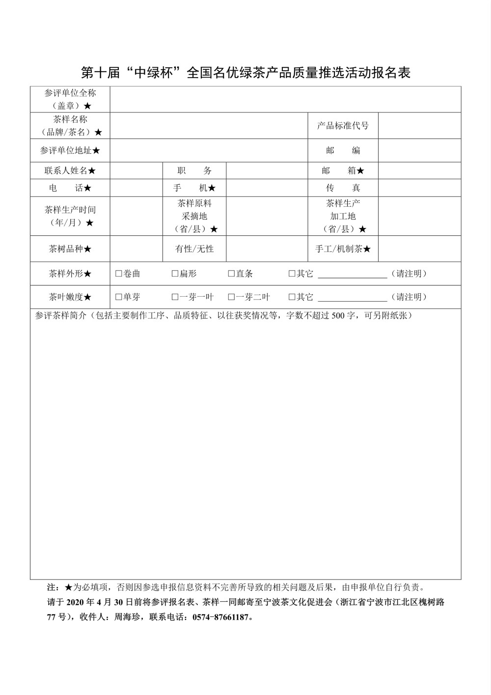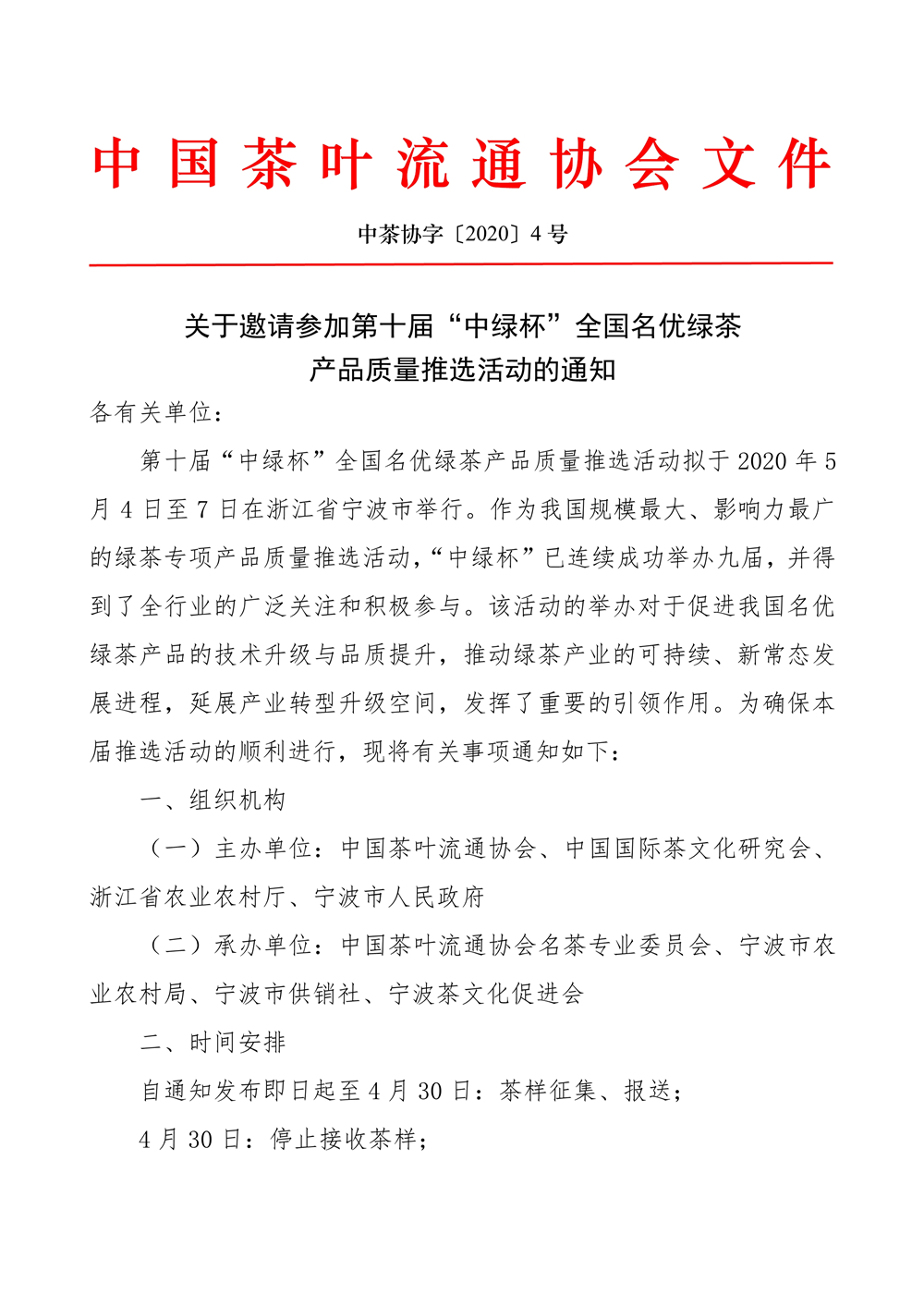 关于邀请参加第十届“中绿杯”全国名优绿茶产品质量推选活动的通知